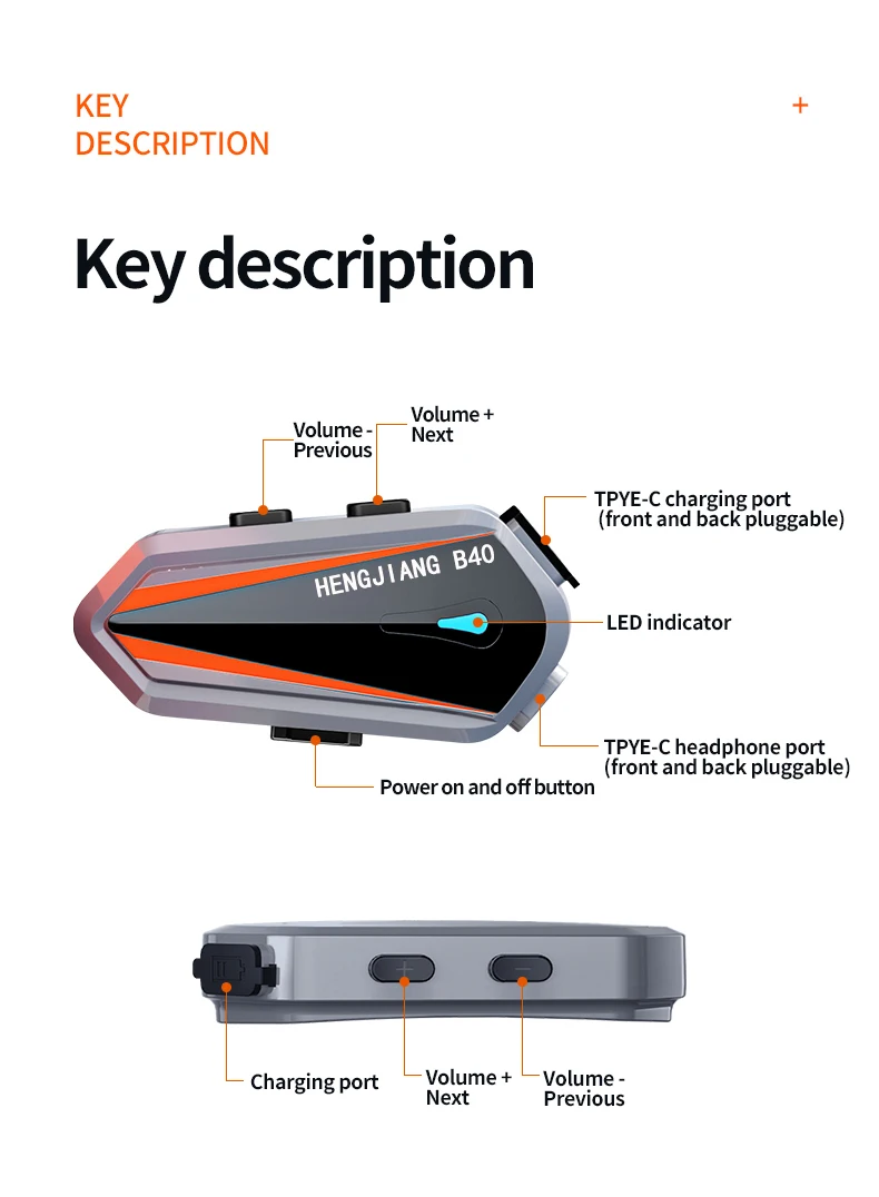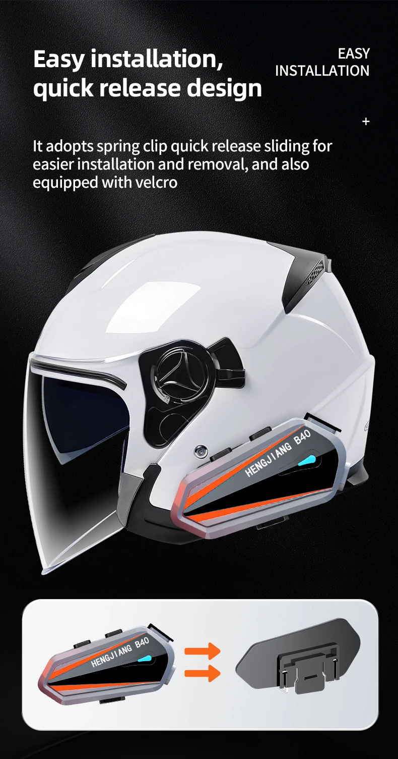 Comprar HENG JIANG-Auriculares Bluetooth B40 para casco, intercomunicador de 1000M, estéreo de mezcla, tipo C, IPX6, impermeable, 1600mAh, V5.3, reproductor MP3