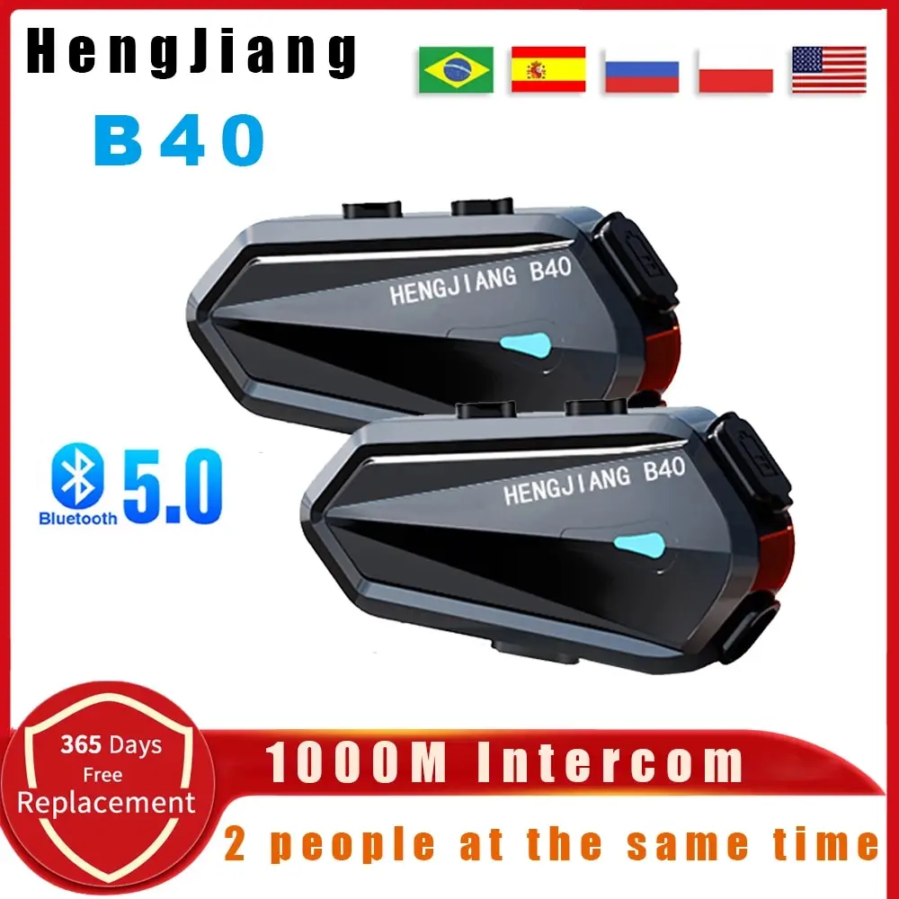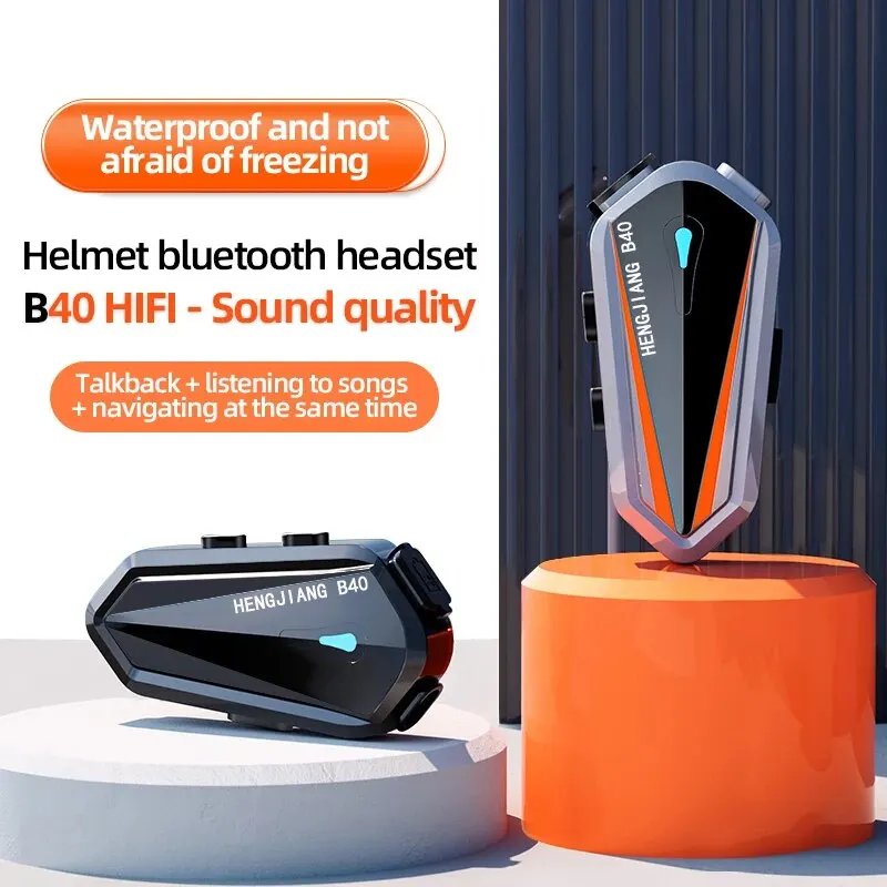 Comprar HENG JIANG-Auriculares Bluetooth B40 para casco, intercomunicador de 1000M, estéreo de mezcla, tipo C, IPX6, impermeable, 1600mAh, V5.3, reproductor MP3