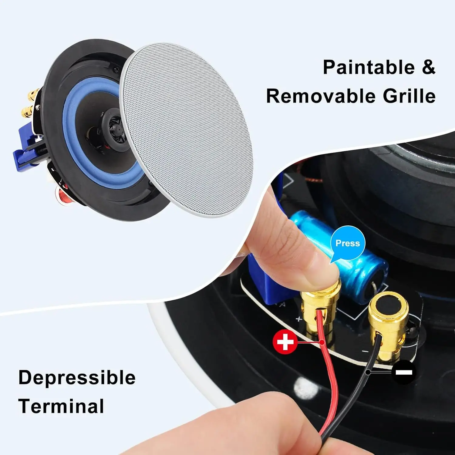 Diseño de montaje empotrado:Diseño compacto de montaje empotrado para una instalación sencilla en la pared/techo o aberturas de altavoz precortadas, para uso doméstico, oficina, aplicaciones de audio profesionales o personalizadas en cualquier superficie plana.