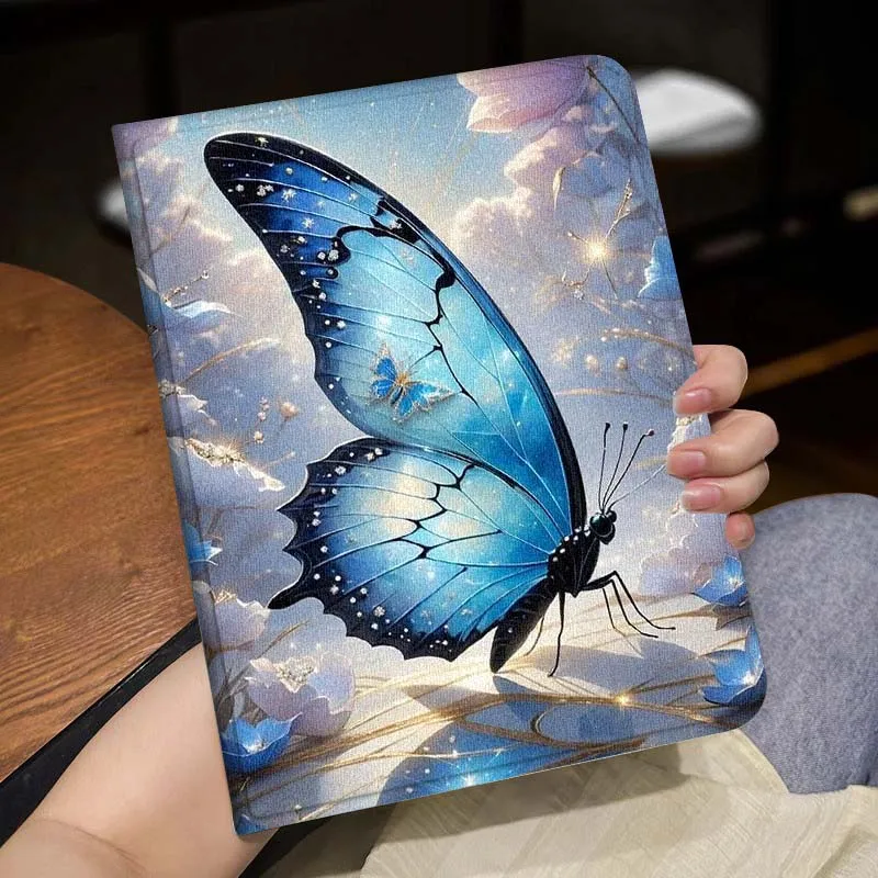 Hermosa arte de mariposa azul para iPad Pro Mini 1 2 3 4 5 6 7 7ta generación 12,9 10,5 13 11 7,9 8,3 M4 pulgadas funda para tableta