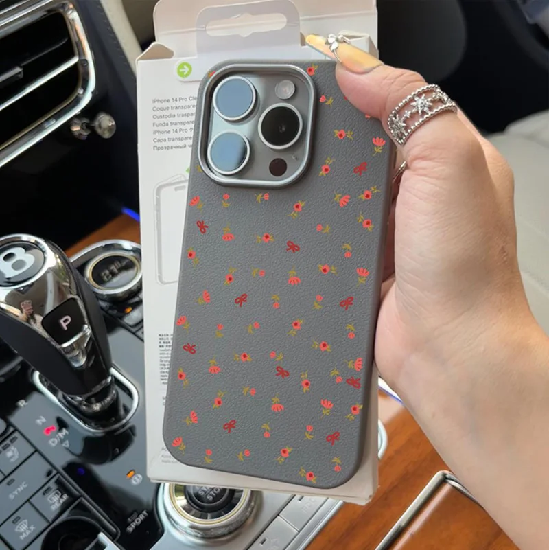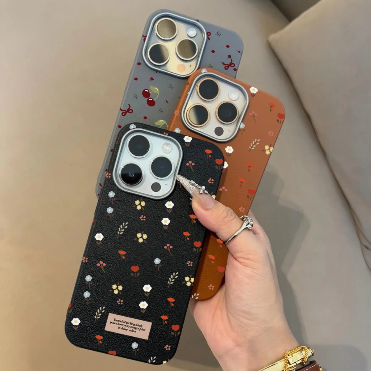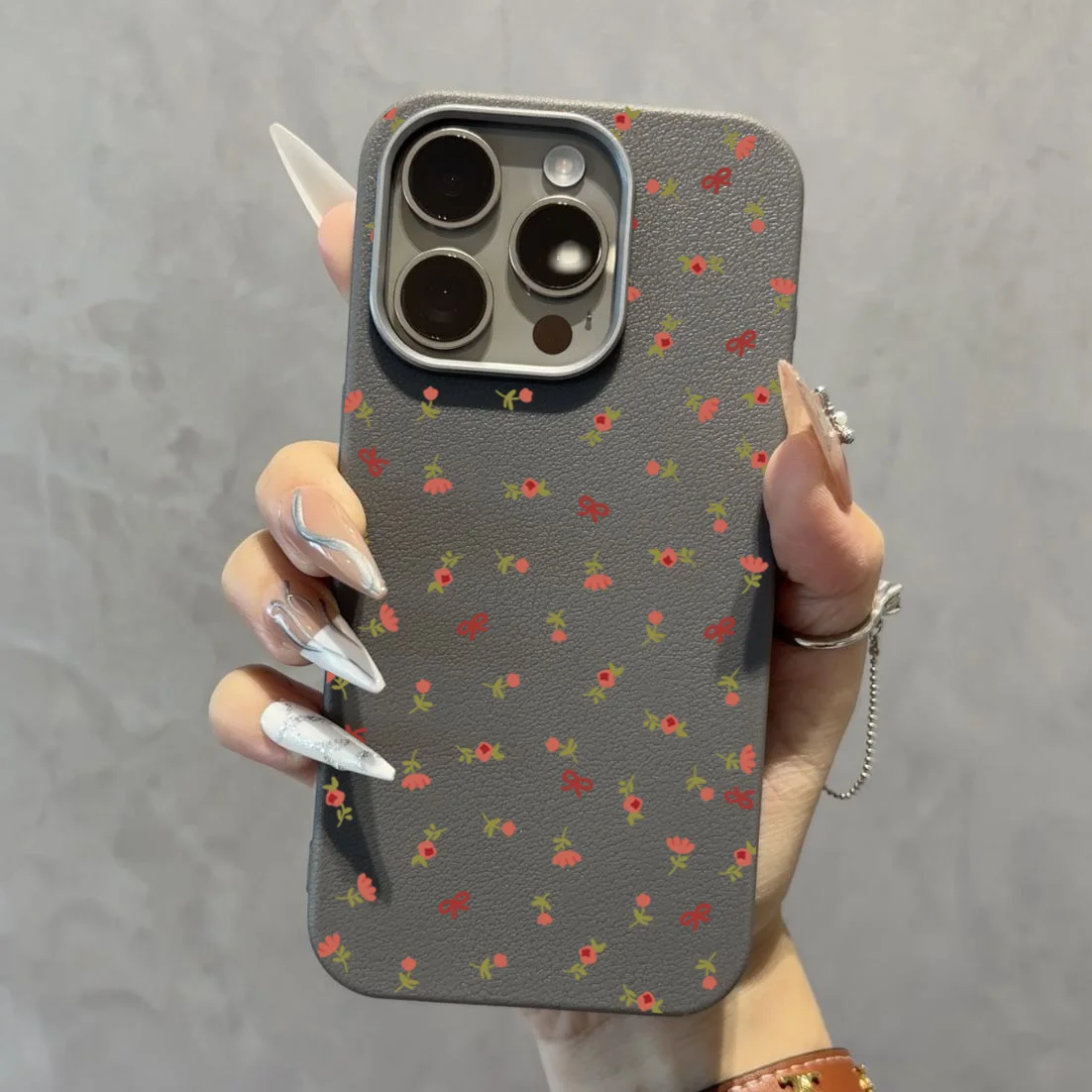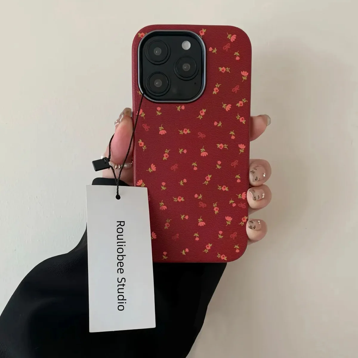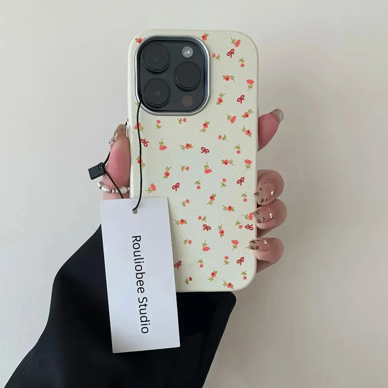 Comprar Hermosa funda de teléfono con diseño de Litchi y lazo de cereza para iPhone 16 15 14 13 12 11 Pro Max XS X XR 7 8 Plus SE2022 cubierta de parachoques de cuero