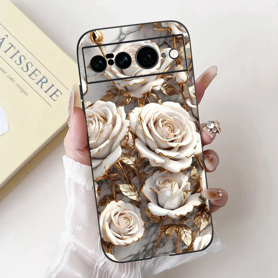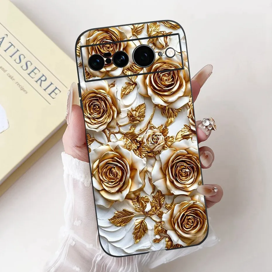 Comprar Hermosa funda de teléfono pintada con flores para Google Pixel 7 Pro Pixel7 funda suave de silicona negra para Google Pixel 7 7Pro fundas parachoques
