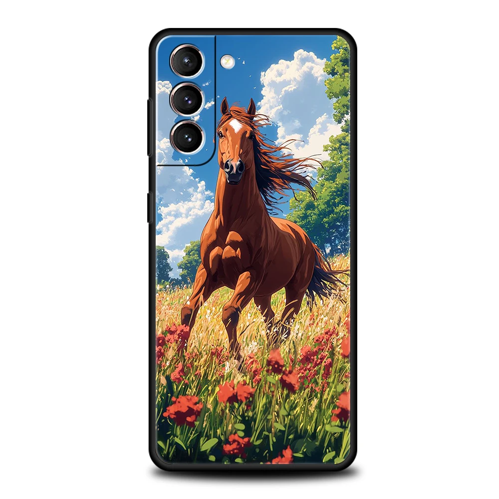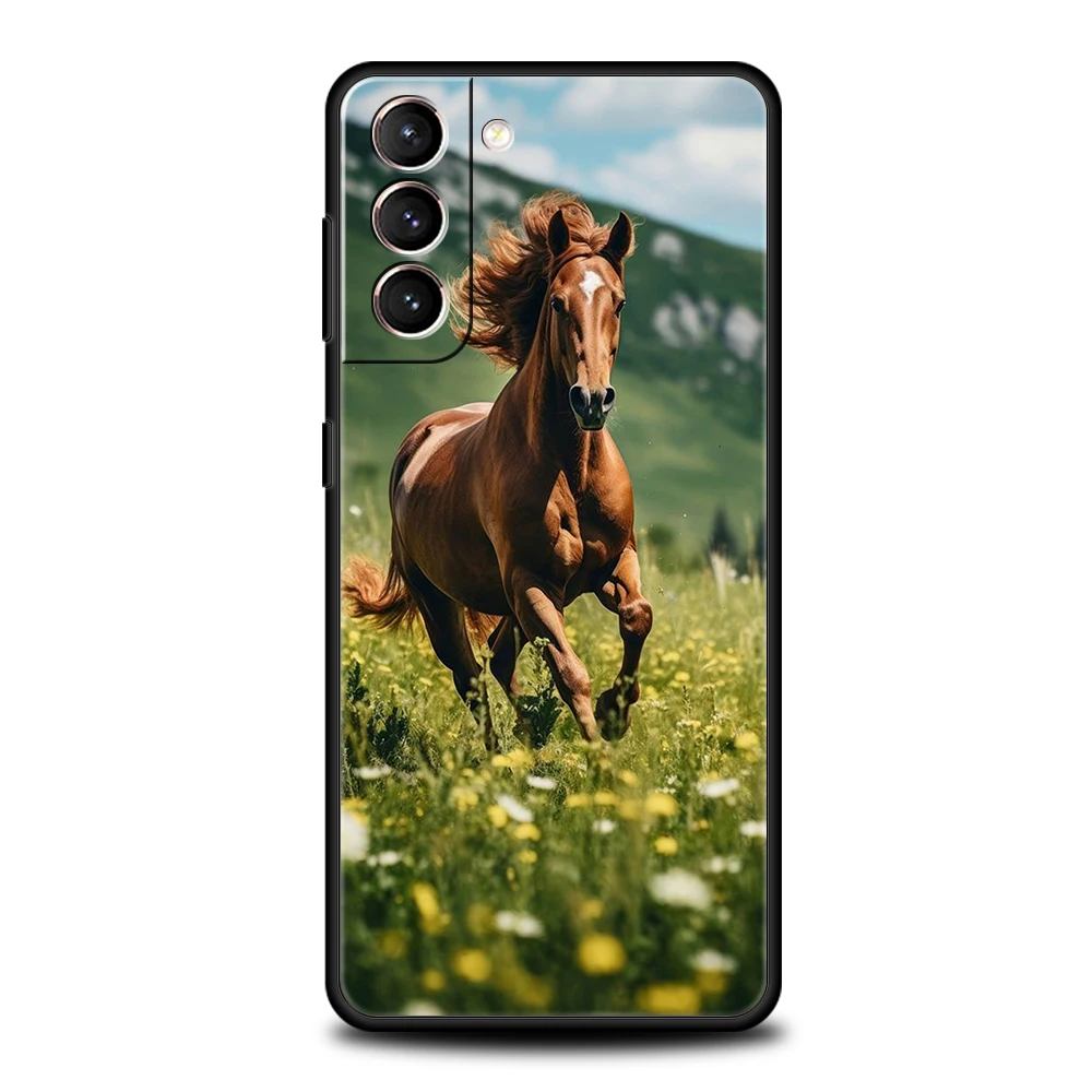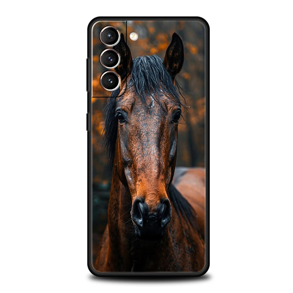 Comprar Hermosa y elegante funda de teléfono con caballos marrones para Samsung Galaxy S25 S24 S23 S22 Ultra S20 S21 FE 5G S10 S9 Plus S10E funda suave de TPU