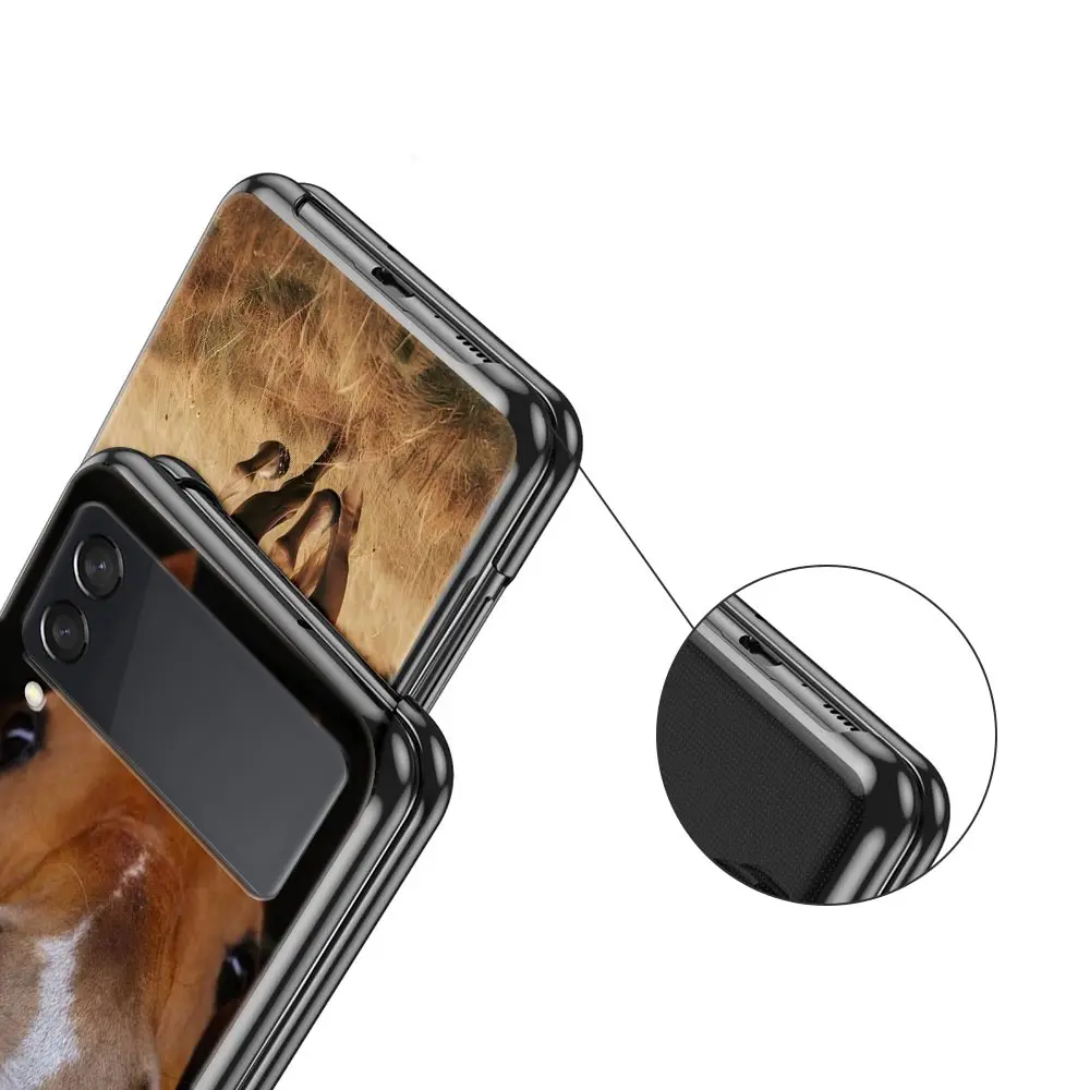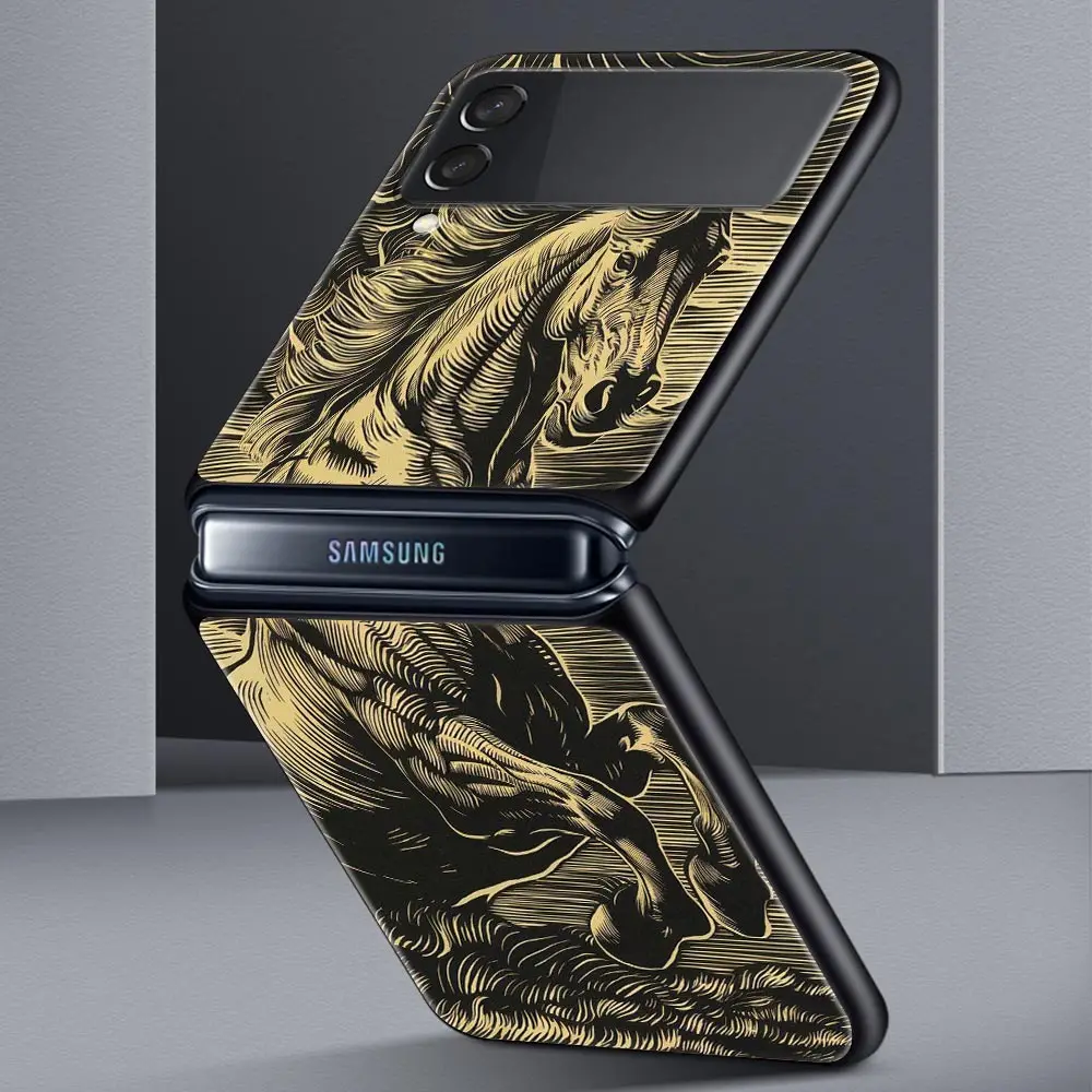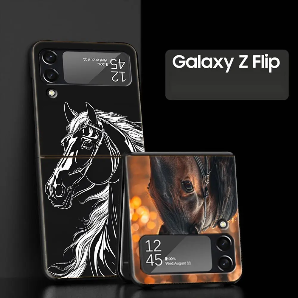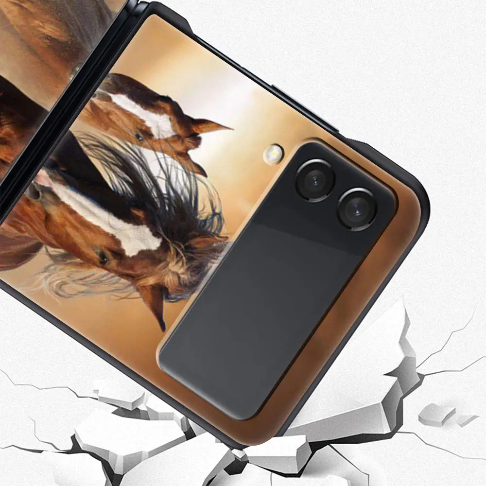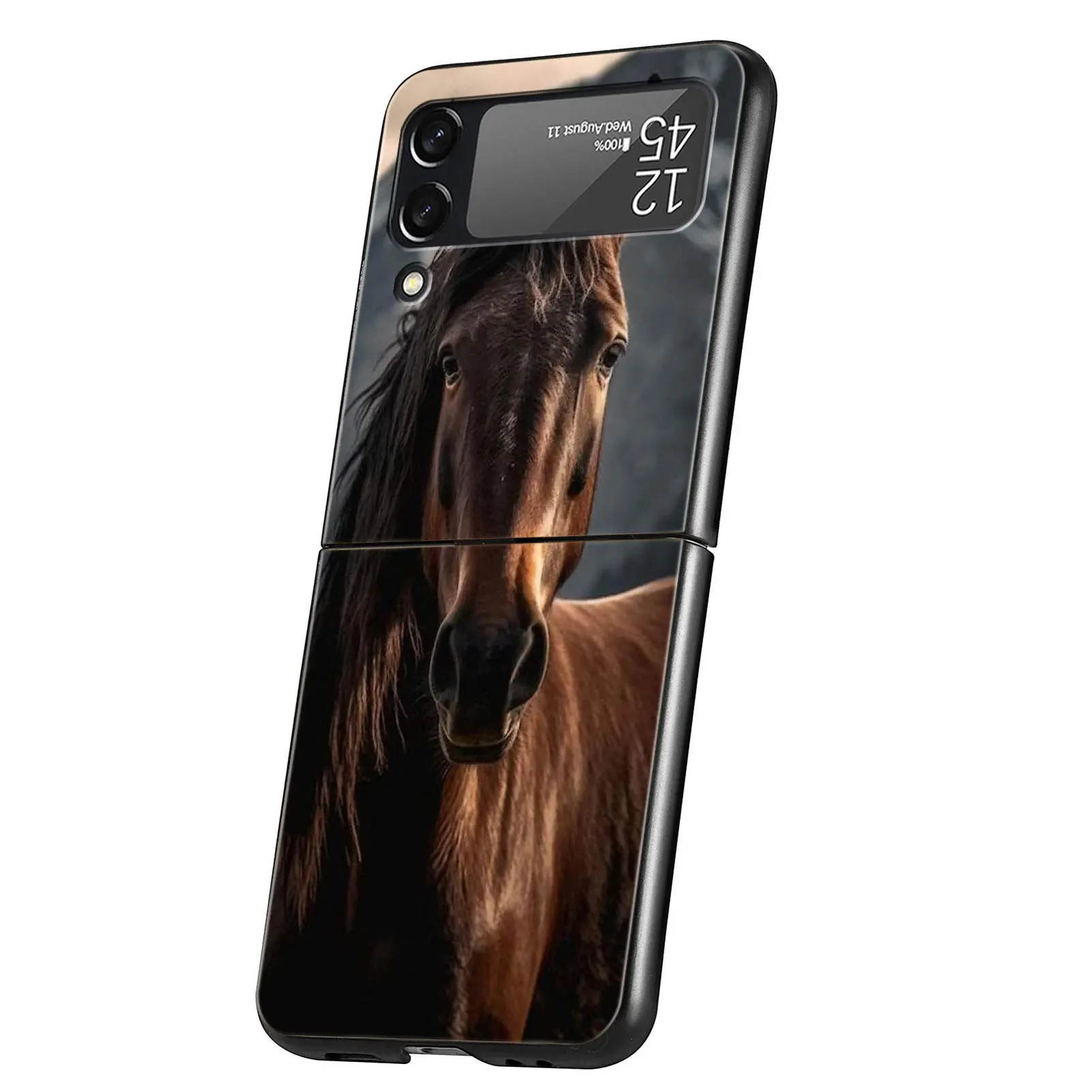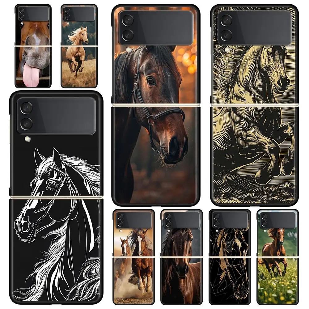 Comprar Hermosa y elegante funda de teléfono con caballos marrones para Samsung Galaxy Z Flip3 Flip4, carcasa para Z Flip 3 4 5 6, funda trasera plegable dura