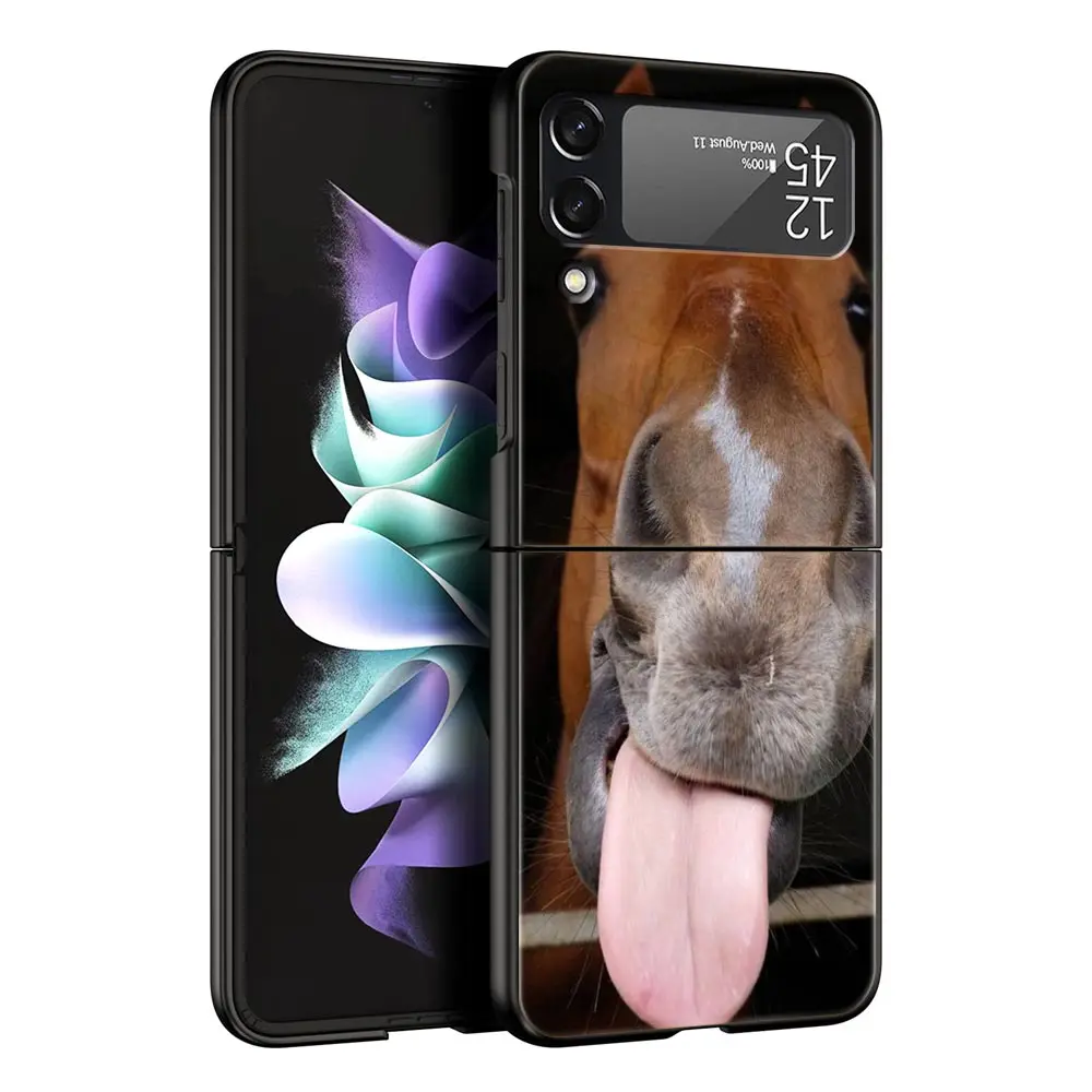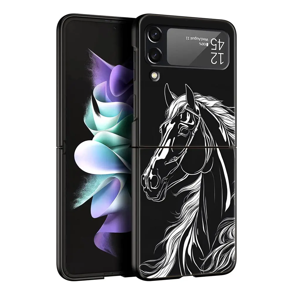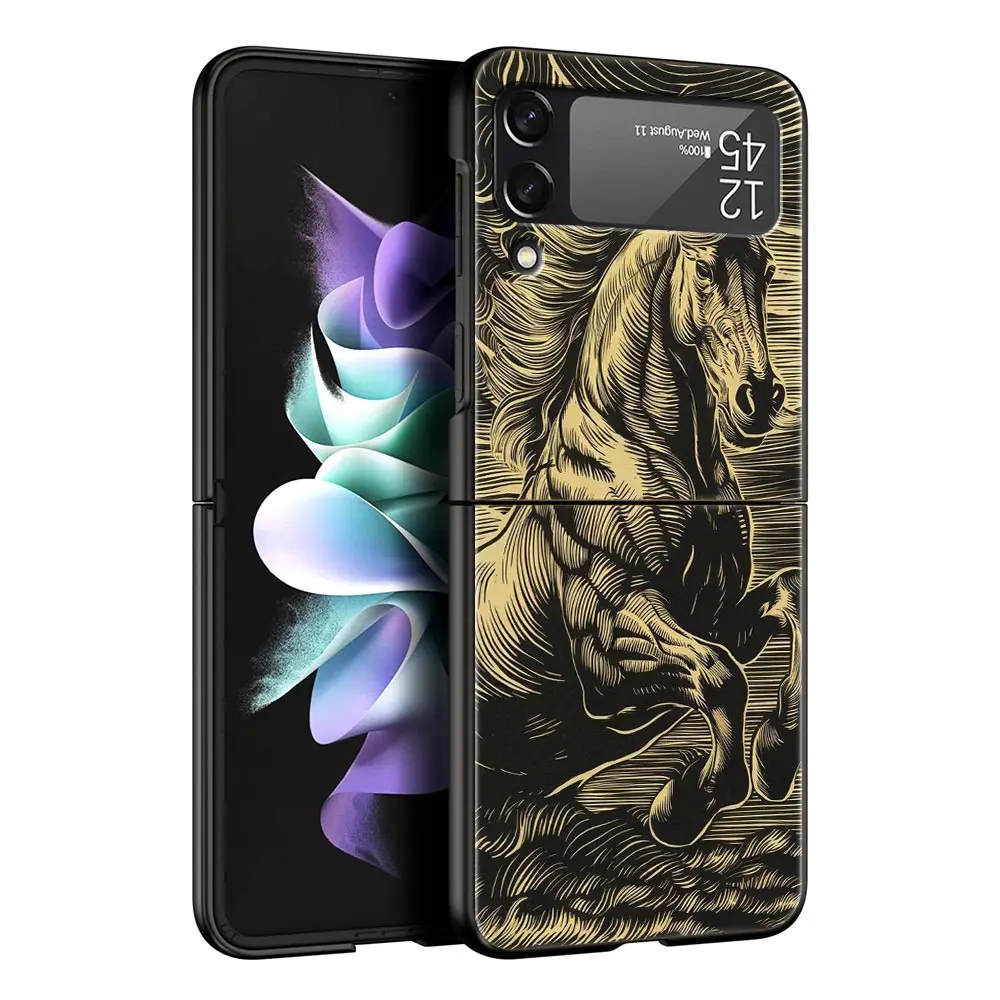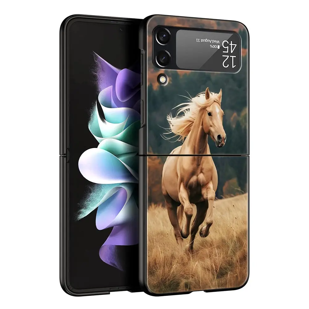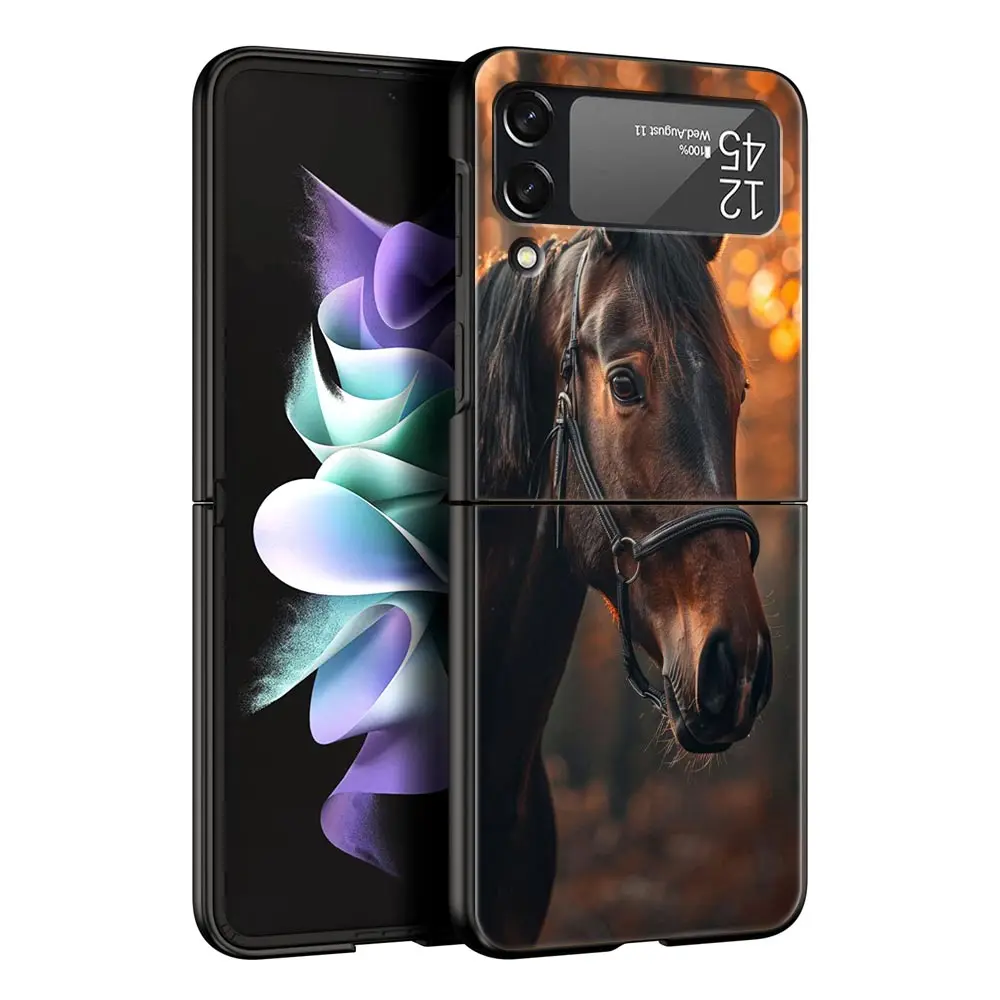 Comprar Hermosa y elegante funda de teléfono con caballos marrones para Samsung Galaxy Z Flip3 Flip4, carcasa para Z Flip 3 4 5 6, funda trasera plegable dura