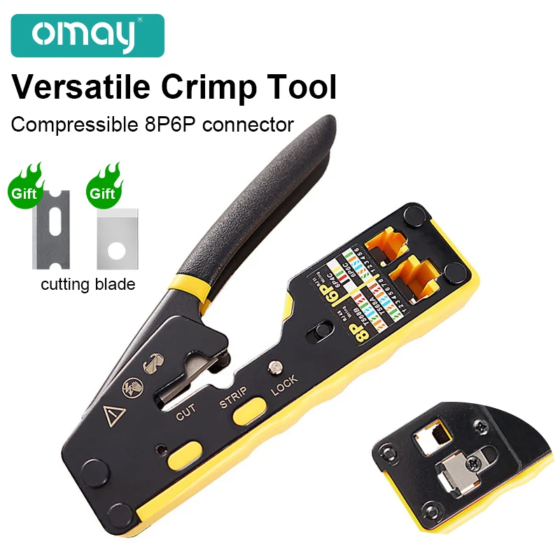 Comprar Herramienta de crimpado versátil RJ45, cortador de prensado de paso para conector Modular 6P/8P/8C Ethernet, herramienta de cable todo en uno