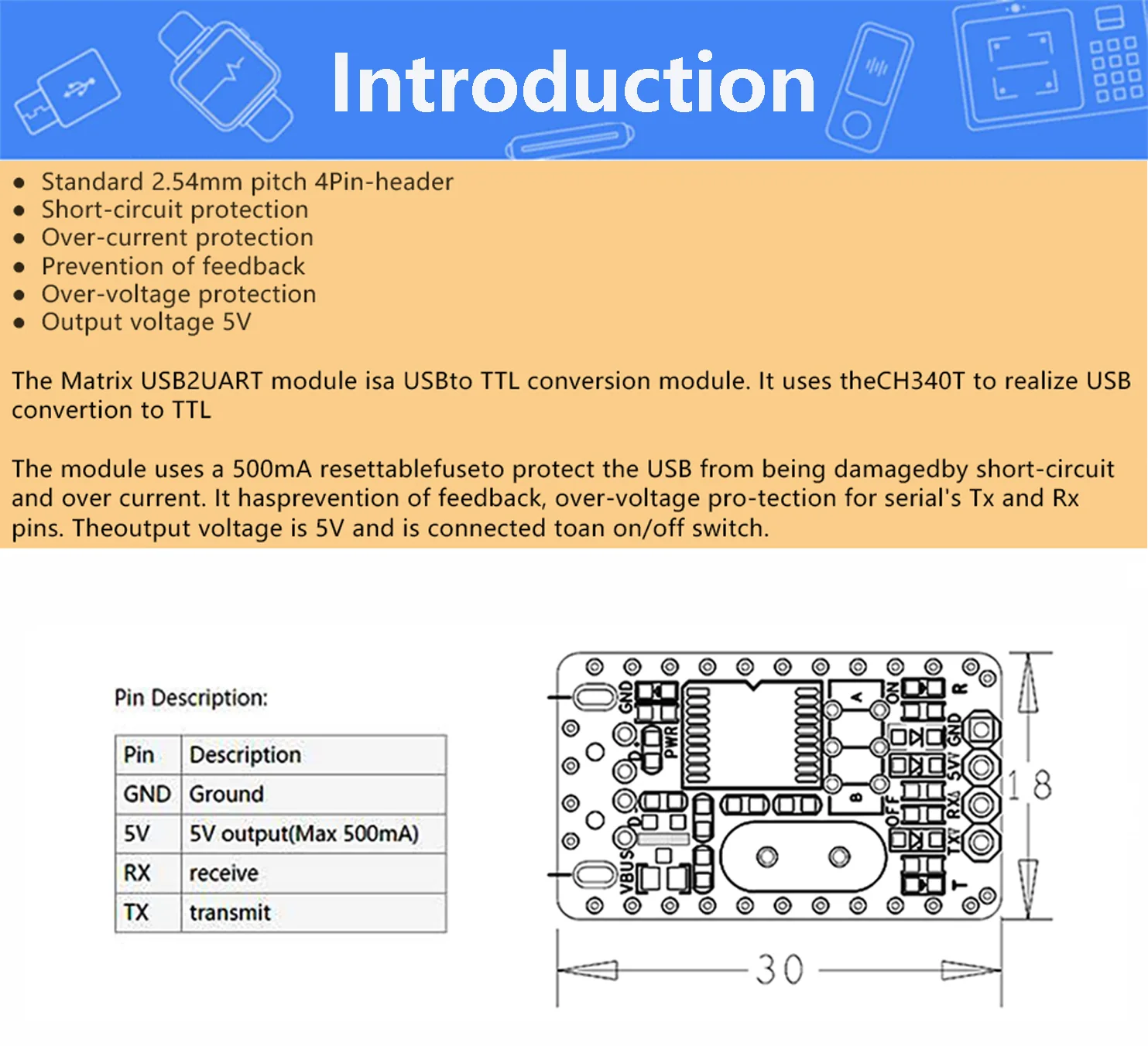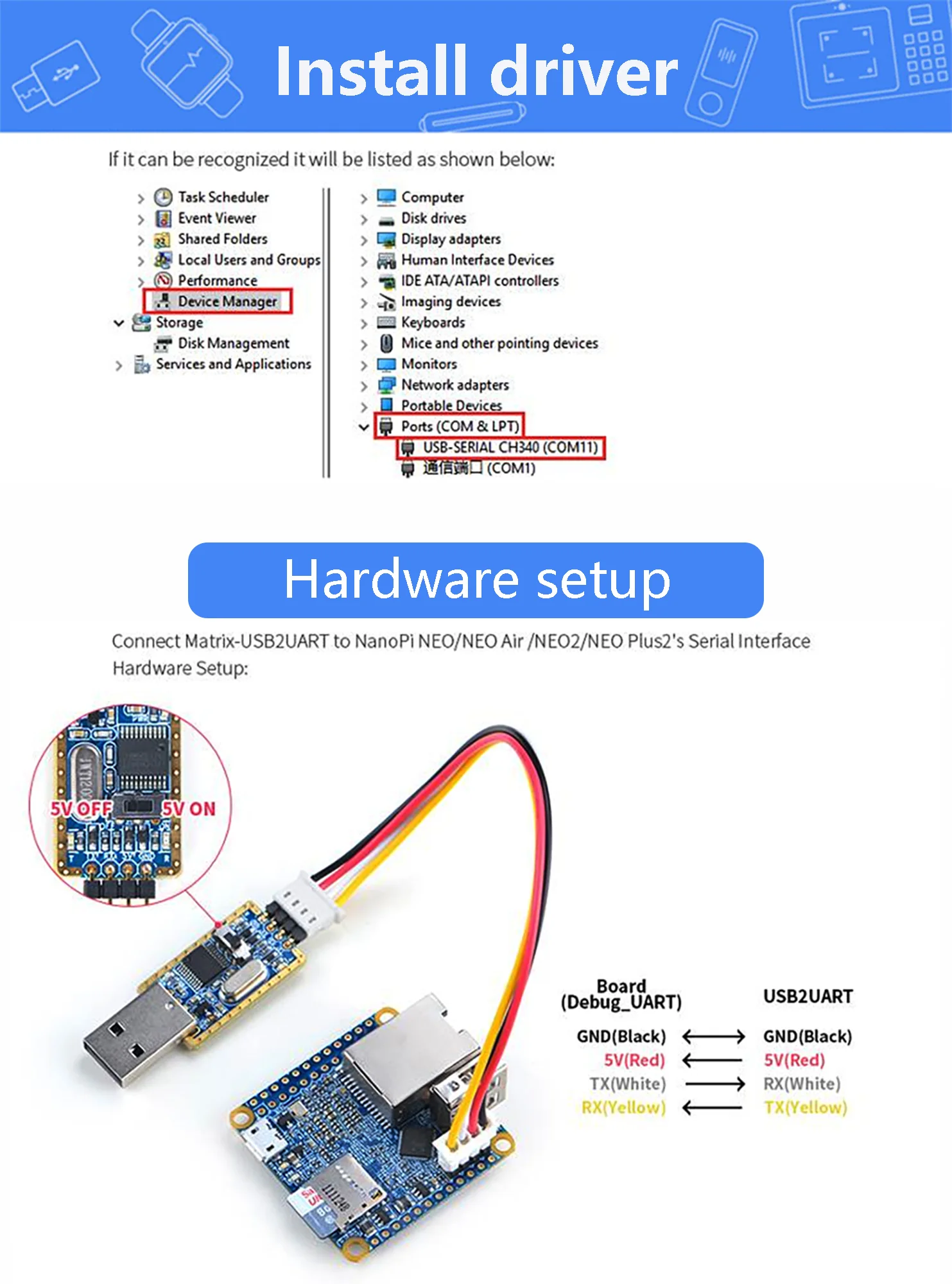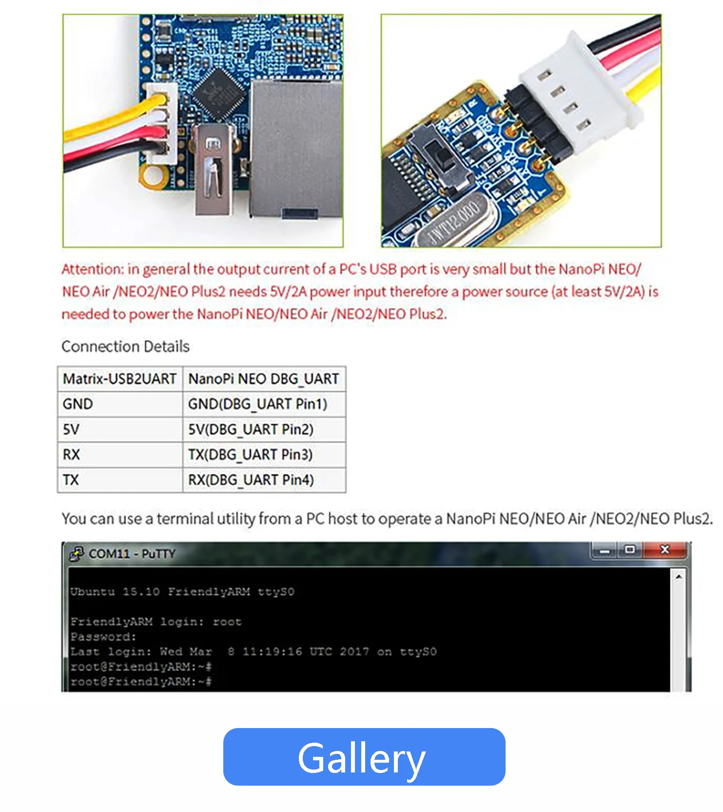 Adecuado para todas las placas de desarrollo de la serie Nano de Friendly Arm y también se puede utilizar para depurar otras placas de desarrollo en serie con un paso de 2,54 mm;