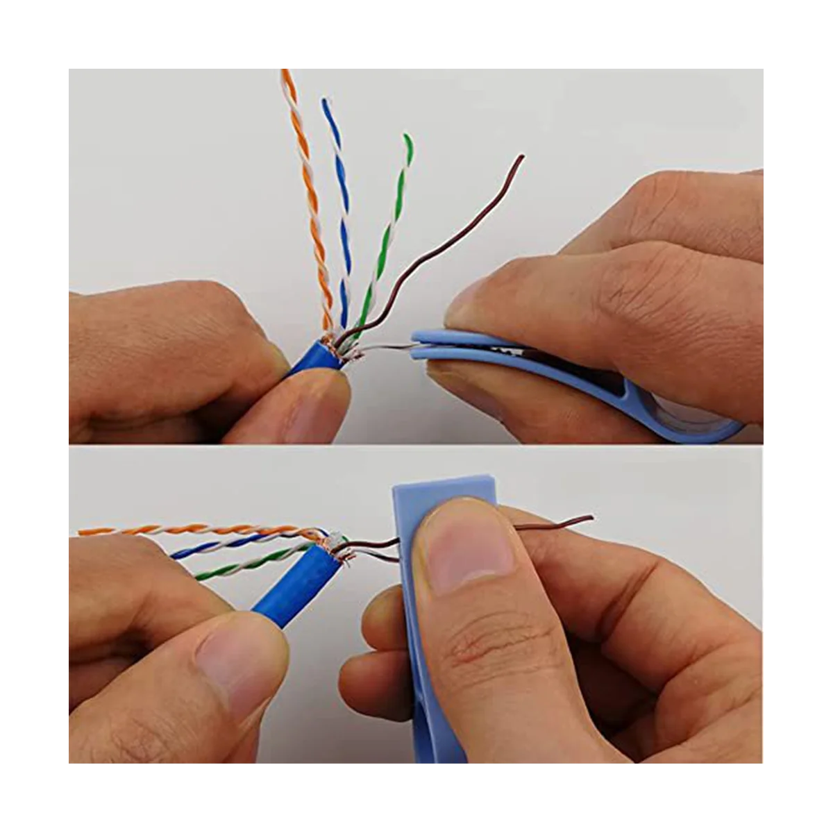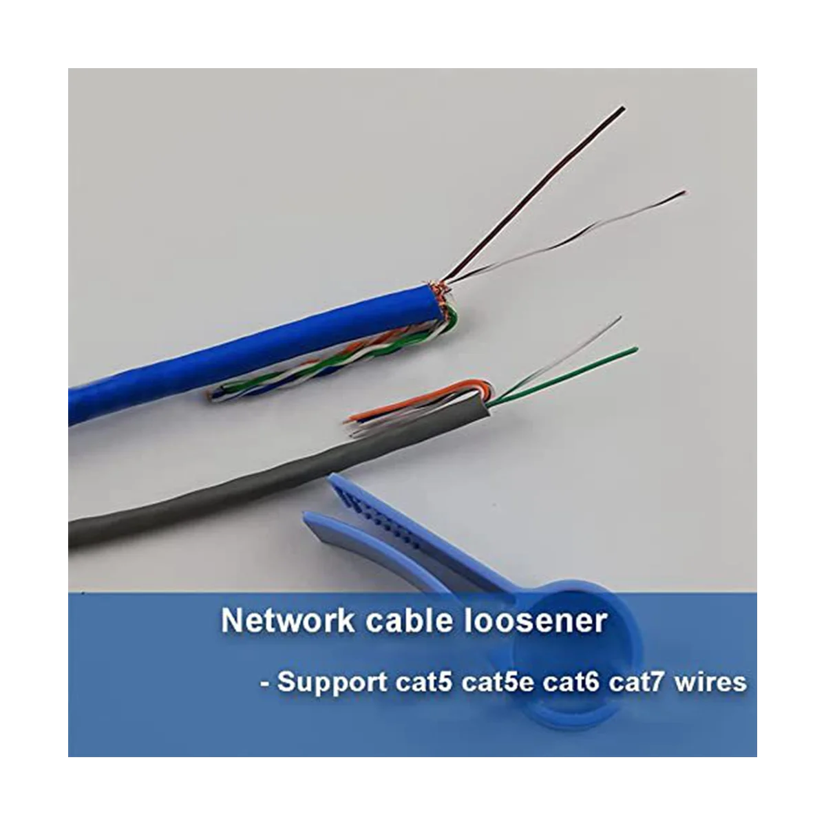 La herramienta de desenroscar se adapta a CAT5, CAT5e, CAT6, CAT7, una herramienta práctica y agradable para fabricar cables de red desenrollando y enderezando el cable de red y la línea telefónica, haciendo que su trabajo sea más eficiente y aliviando sus cargas.
