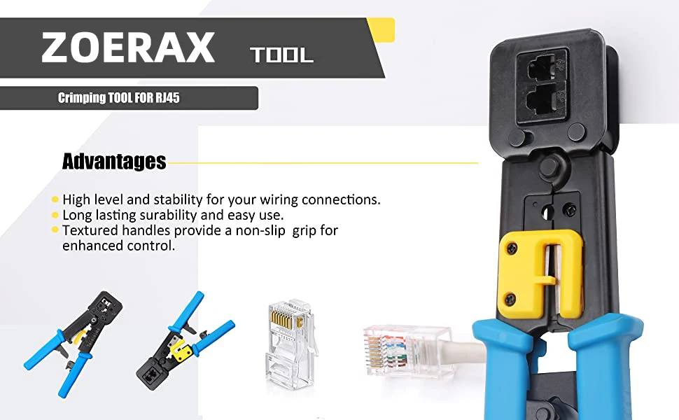 Herramienta de engarce ZoeRax RJ45, herramienta de engarce Cat5 Cat5e Cat6 para conectores regulares y de paso final RJ45/RJ12