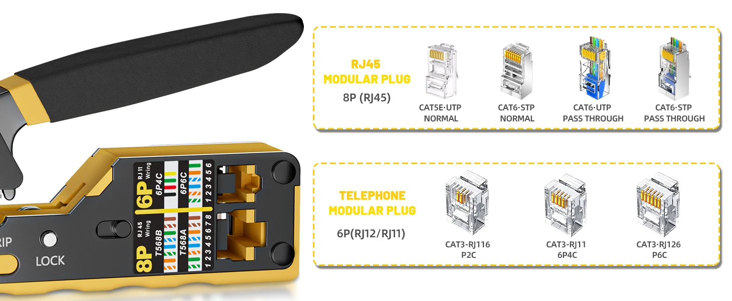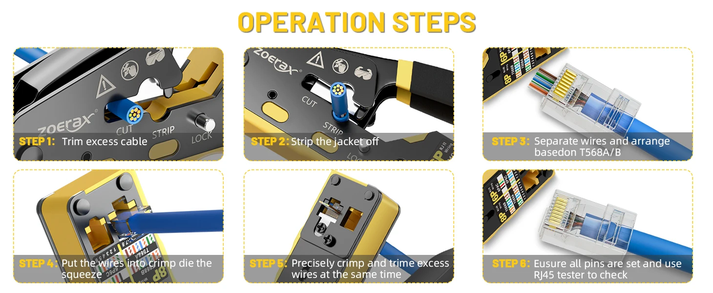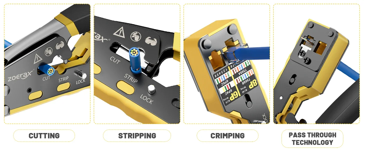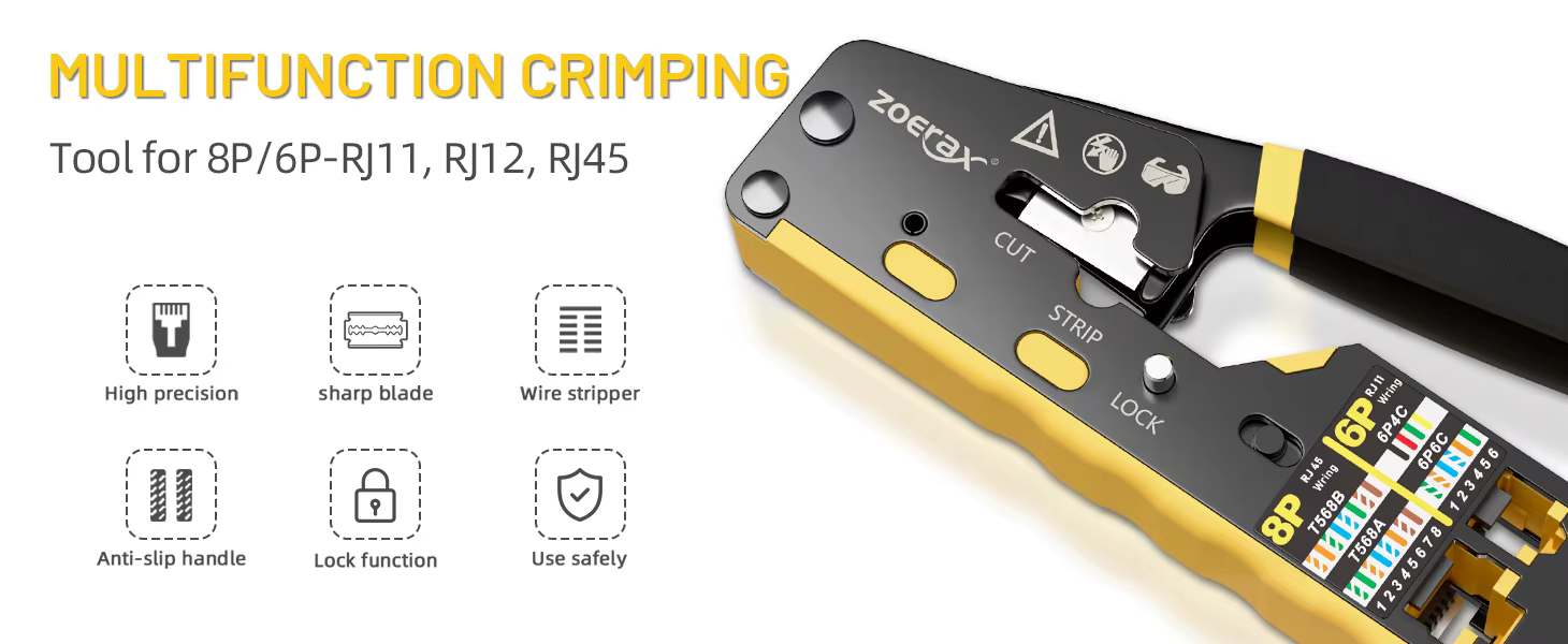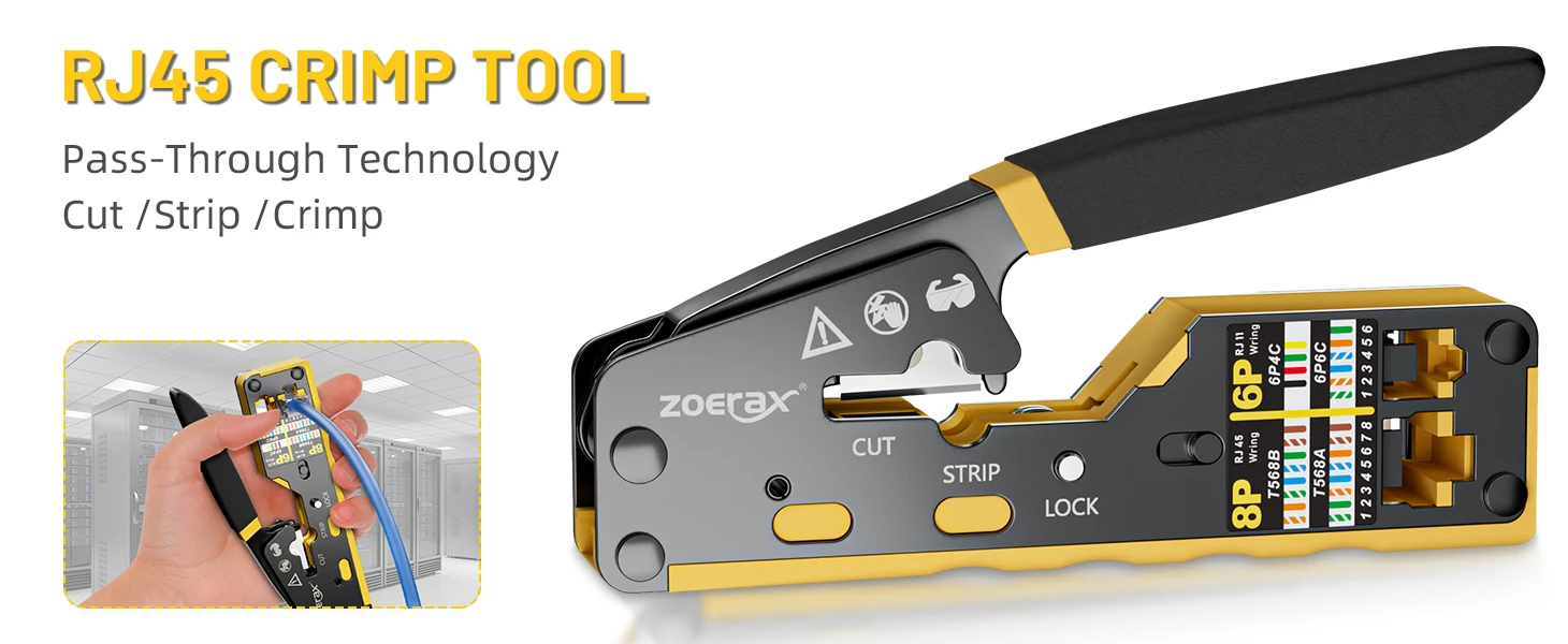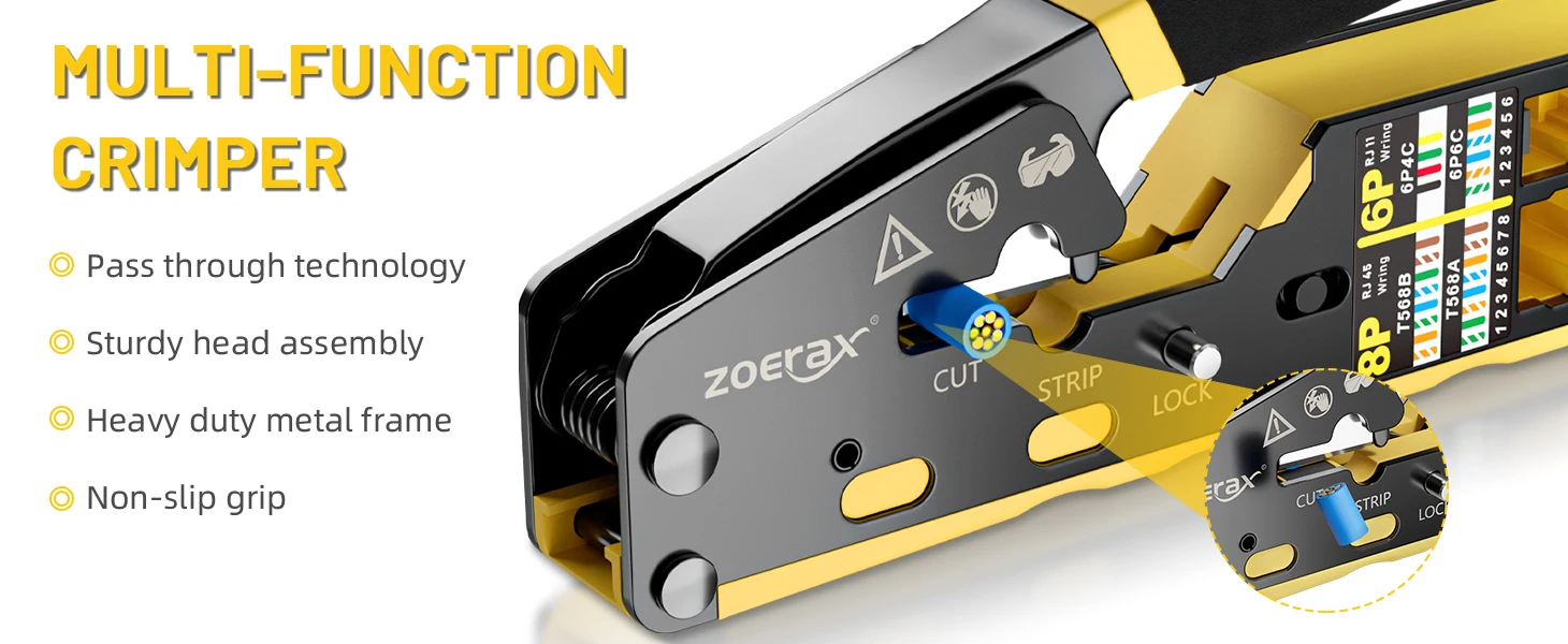 Herramienta de engarzado ZOERAX RJ45 RJ11 RJ12 para Cat6 Cat5 Cat5e, engarzadora Ethernet de paso con hoja de repuesto