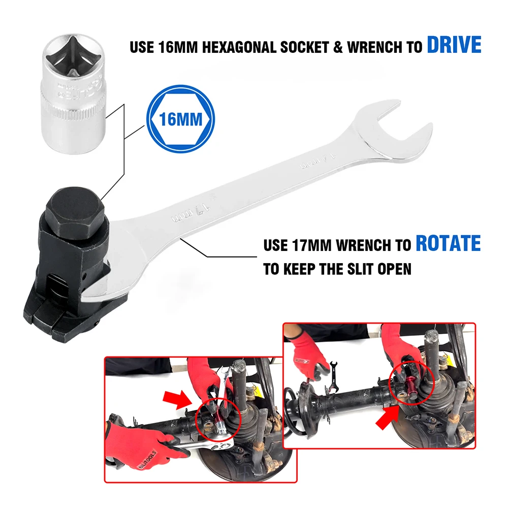 • Versátil :Esta herramienta se puede utilizar para eliminar y reemplazar varios tipos de amortiguadores, incluidas las juntas de rótula y los bujes, lo que la convierte en una adición versátil al kit de herramientas de cualquier propietario de automóvil.