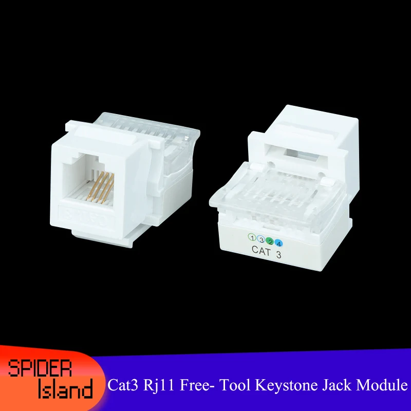 Nueva herramienta gratuita Cat3 Rj11 Tel Módulo de teléfono chapado en oro 4 Core Tooless Cat 3 Keystone Jacks conector
