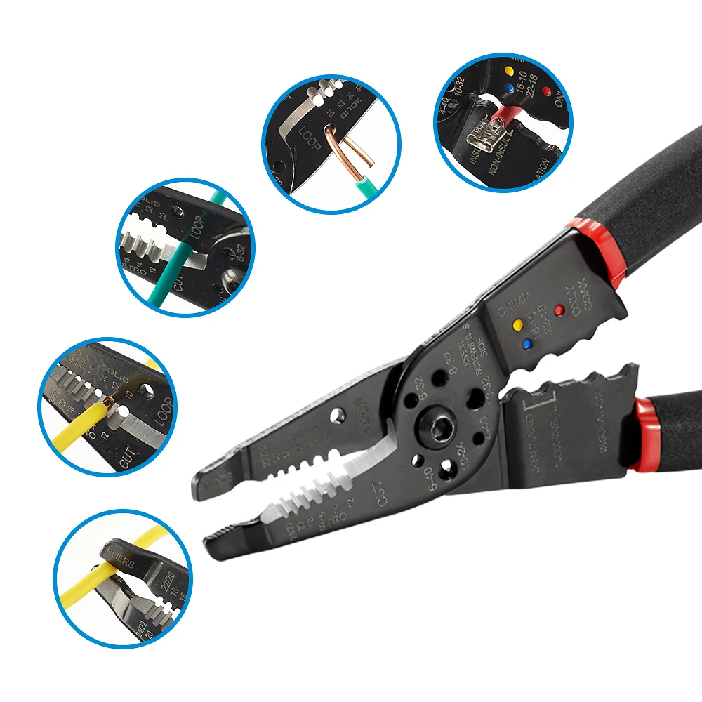Herramienta multifuncional especial: corte de cables y tornillos, pelado de cables y prensado para uso amplio rango
