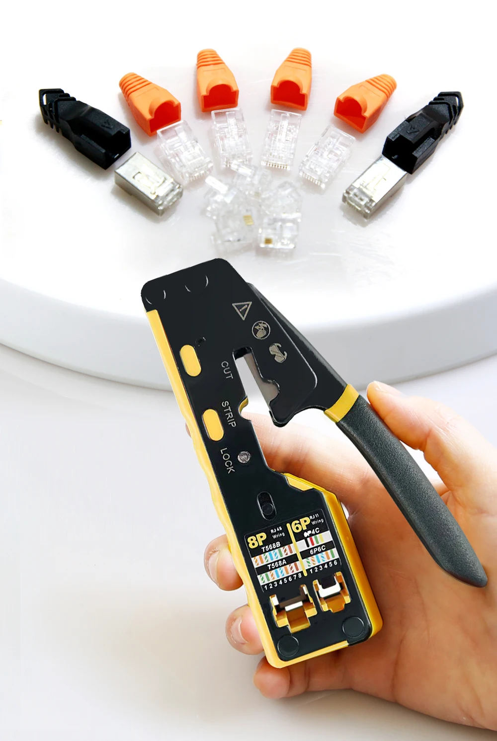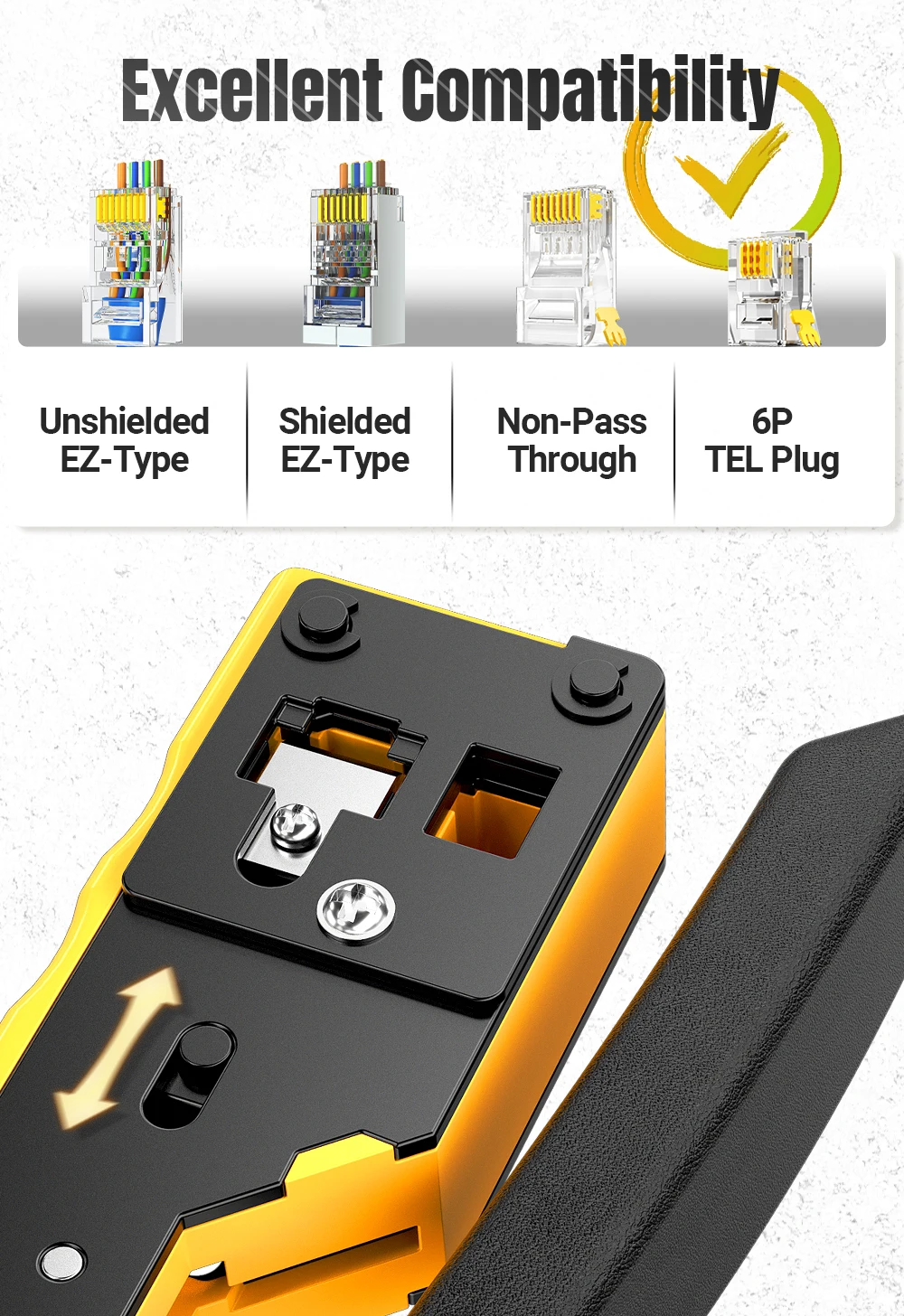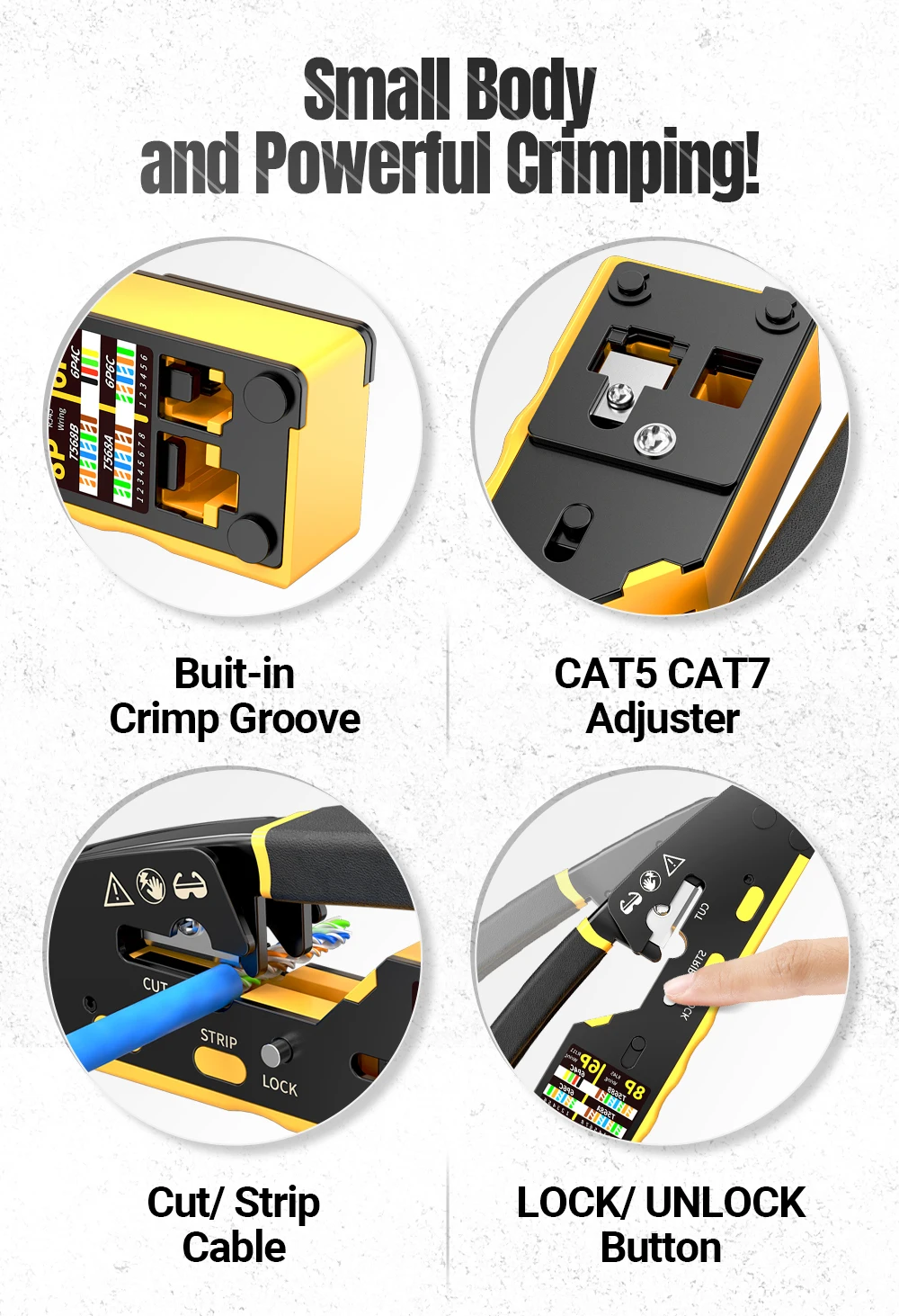 Operación suave enCrimpadoEnchufe modular de la red y del teléfono,StripingLa cubierta exterior del cable, yRecorte o cutinAlambres del conductor de G. Para usted a DIY cable Lan más fácil en el sitio.