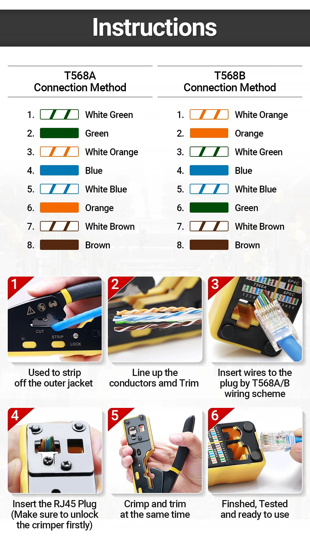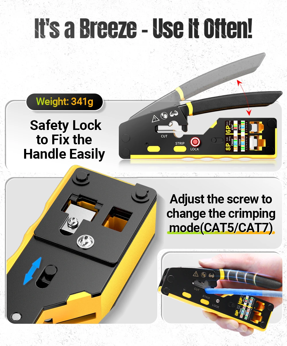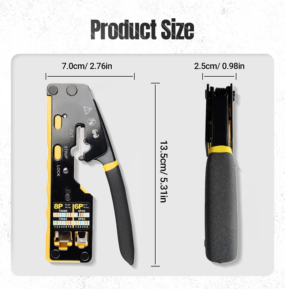 Operación suave enCrimpadoEnchufe modular de la red y del teléfono,StripingLa cubierta exterior del cable, yRecorte o cutinAlambres del conductor de G. Para usted a DIY cable Lan más fácil en el sitio.