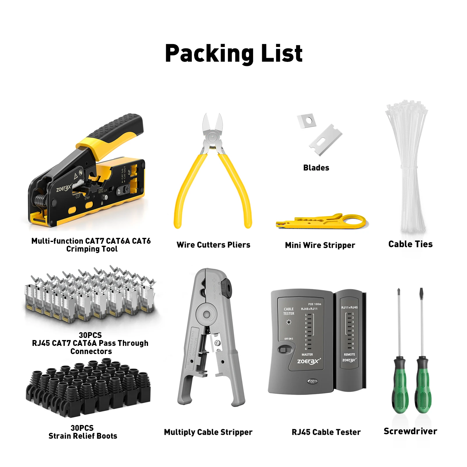 Equipada con una barra prensadora de pestillo de tensión ajustable, esta herramienta es compatible con los conectores Cat5e, Cat6, Cat6a y Cat7.Garantiza una conexión segura para aplicaciones de paso RJ45, brindando flexibilidad para diferentes necesidades de redes.