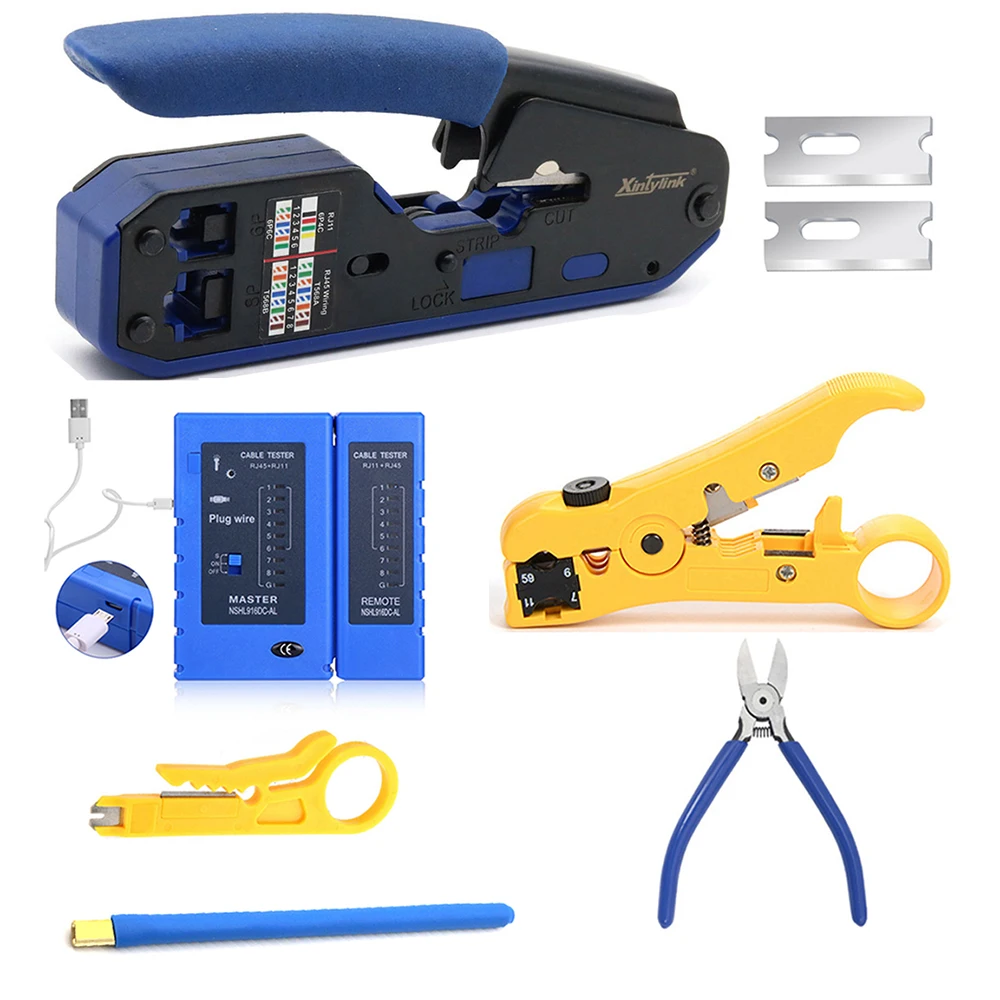 Comprar Herramienta de prensado RJ45, alicates cat6, cat5e, cat5, pelacables de red, cortador, abrazadera de cable ethernet, RG45, RJ11, 6p, 8p, lan