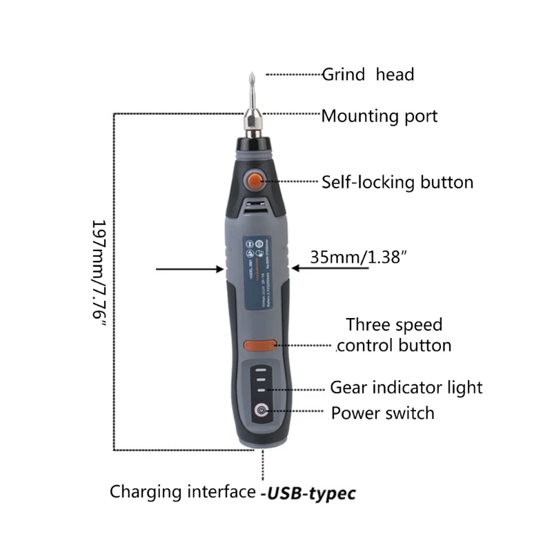 La herramienta rotativa inalámbrica tiene 3 Ajustes de velocidad (8500 15000 21000RPM) para un control de velocidad más fácil y satisfacer las demandas de energía de diferentes tareas.