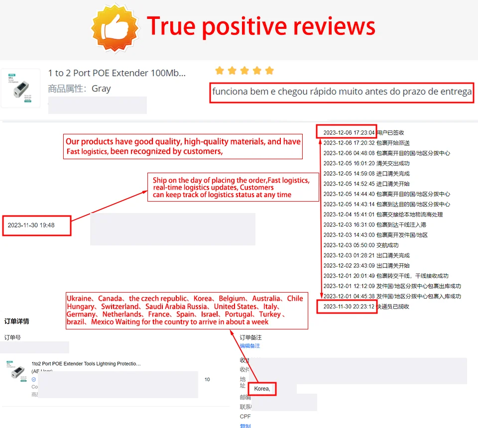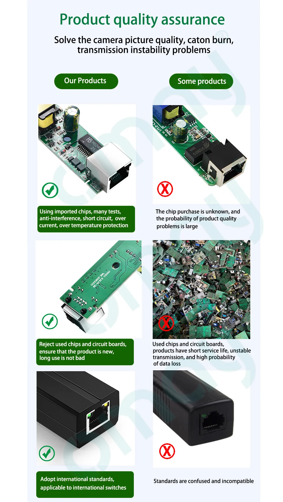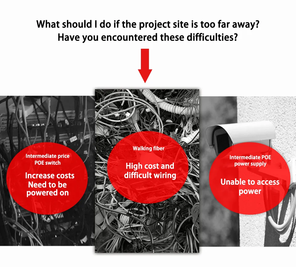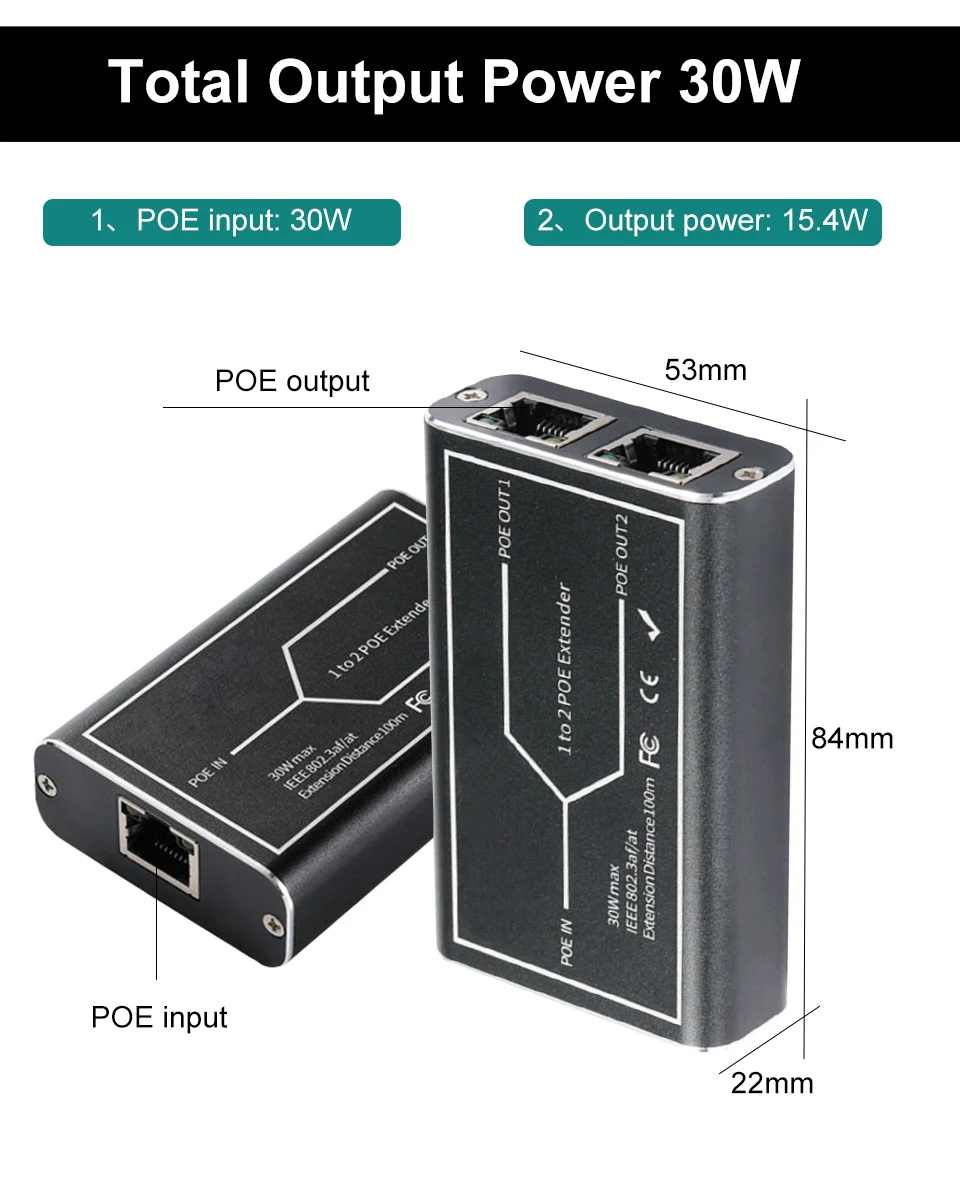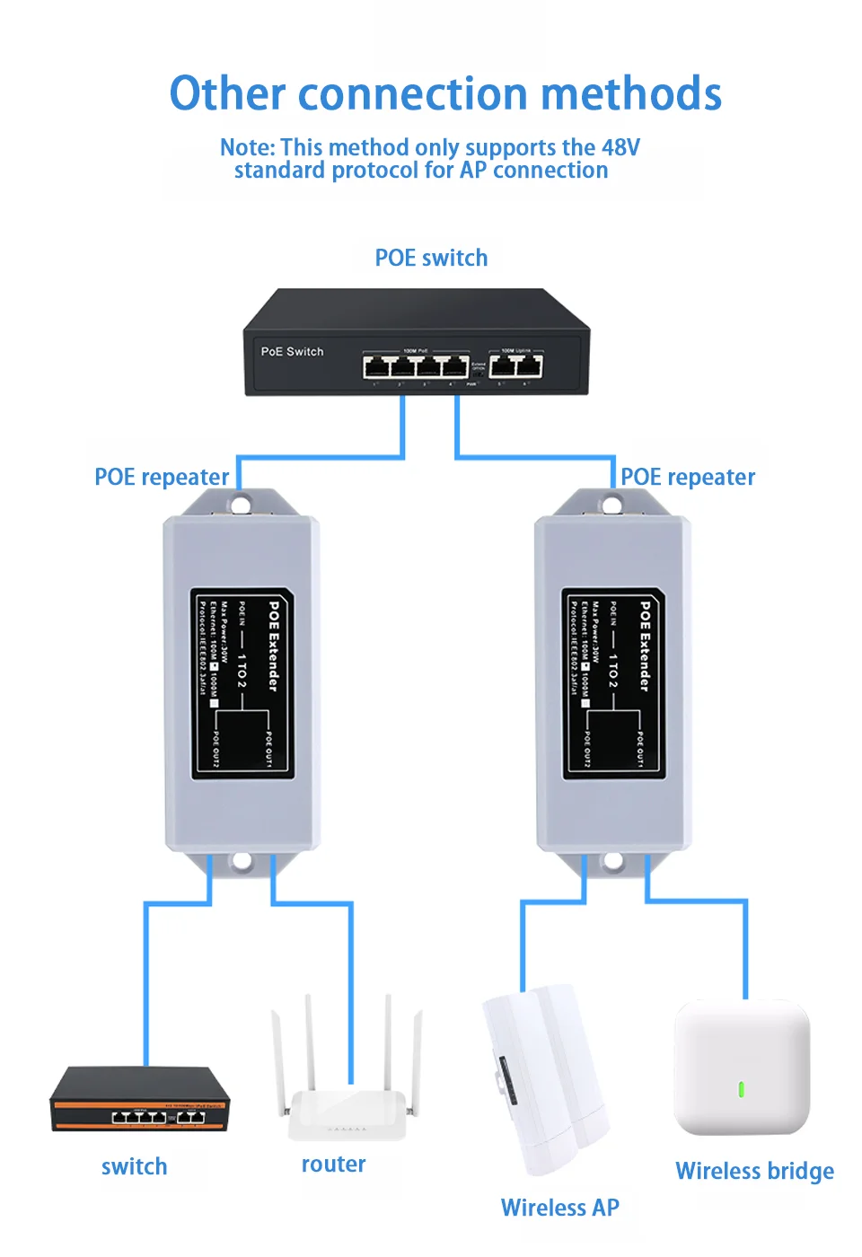 6. Dividido en dos partes: alta velocidad y estable: extensor de red POE, no solo resuelve el problema del cableado desordenado, sino que también ahorra costos de cable de red y costos de construcción de personal;