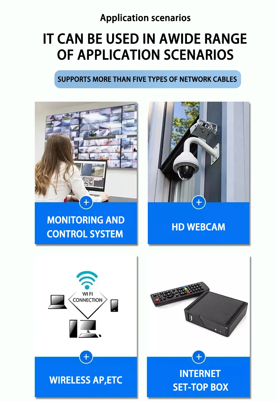 4.Se puede emparejar con una amplia gama de escenarios de aplicación: Admite 5 o más tipos de cables de red/
