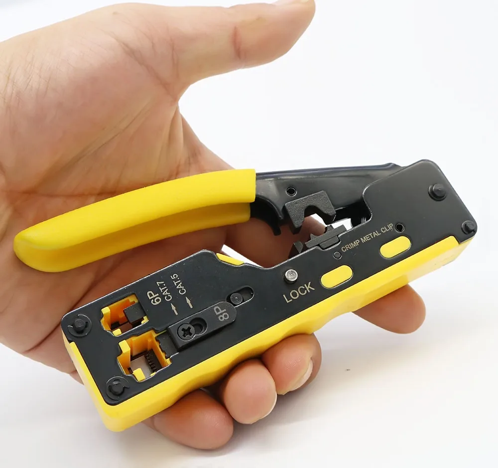 Construido para conectores de red blindados: engarza las cavidades de matriz fija RJ45 (datos) y RJ12 RJ11 (voz), admite cables Ethernet Cat5 Cat5 Cat5e Cat5e Cat6 STP/UTP, pares trenzados, engarzado de cables de teléfono, voz y datos.Diseño especial para conectores blindados Cat6a Cat7 e incluso engarzar el clip de metal en los enchufes.