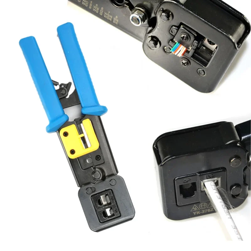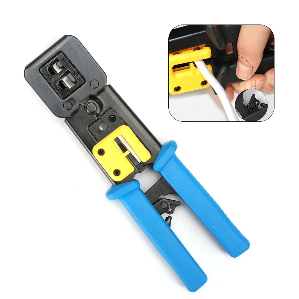 Comprar Herramientas de red manuales RJ45, alicates RJ12 Cat5 Cat6 8p8c, pelacables, abrazadera de presión, herramienta de prensado de enchufe RJ45 de orificio pasante