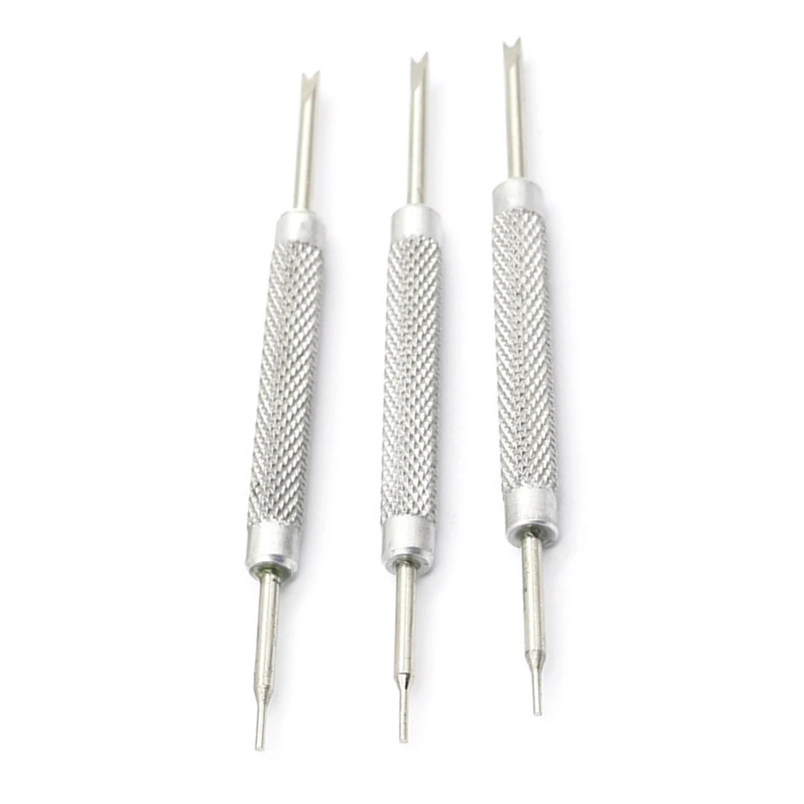 Extremo de horquilla pequeño para quitar las barras de resorte de la parte posterior de la banda de metal.