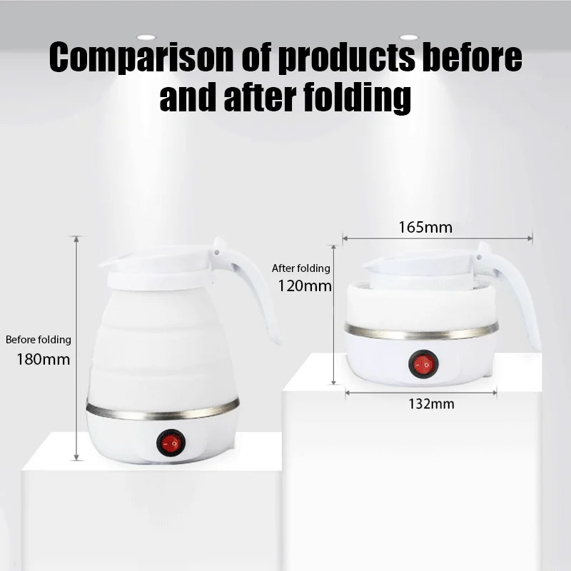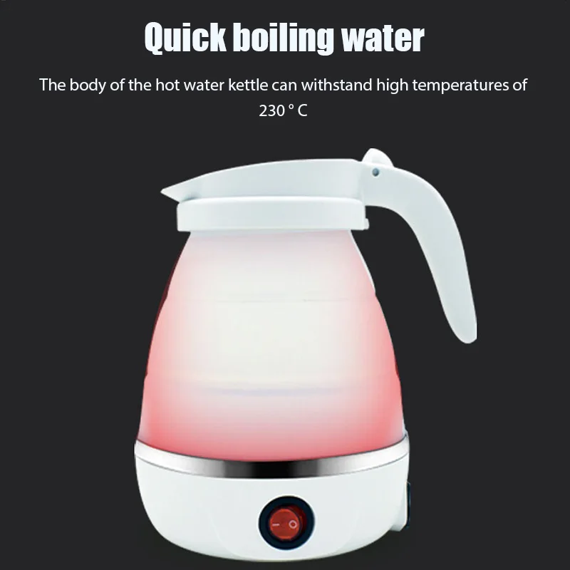 Hervidor eléctrico, puerto eléctrico plegable, hervidor portátil de viaje para acampar, calentador de agua eléctrico de 600ML, puerto de hervidor plegable portátil