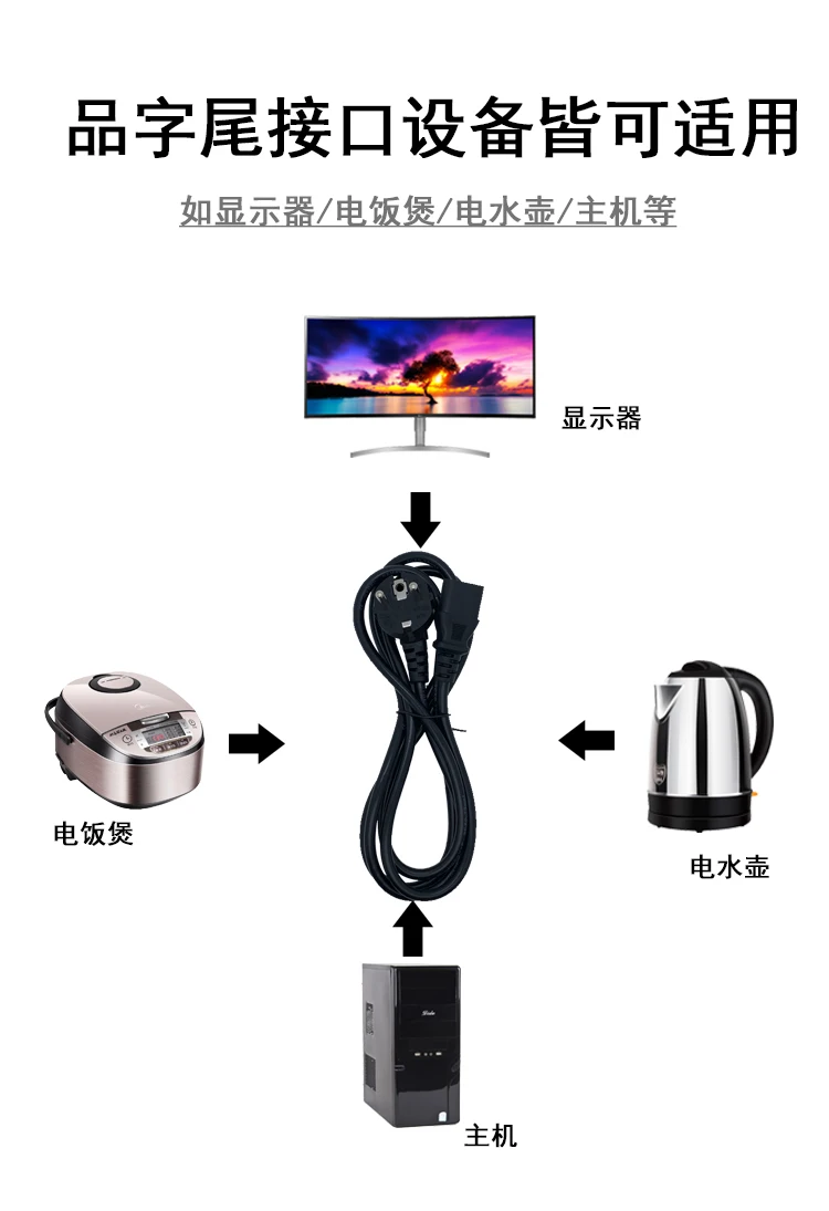 ¡Enchufe UE a IEC C13 que se utiliza en dispositivos como adaptadores de CA, cámaras digitales, videocámaras, monitores, impresoras, TV directa y más!