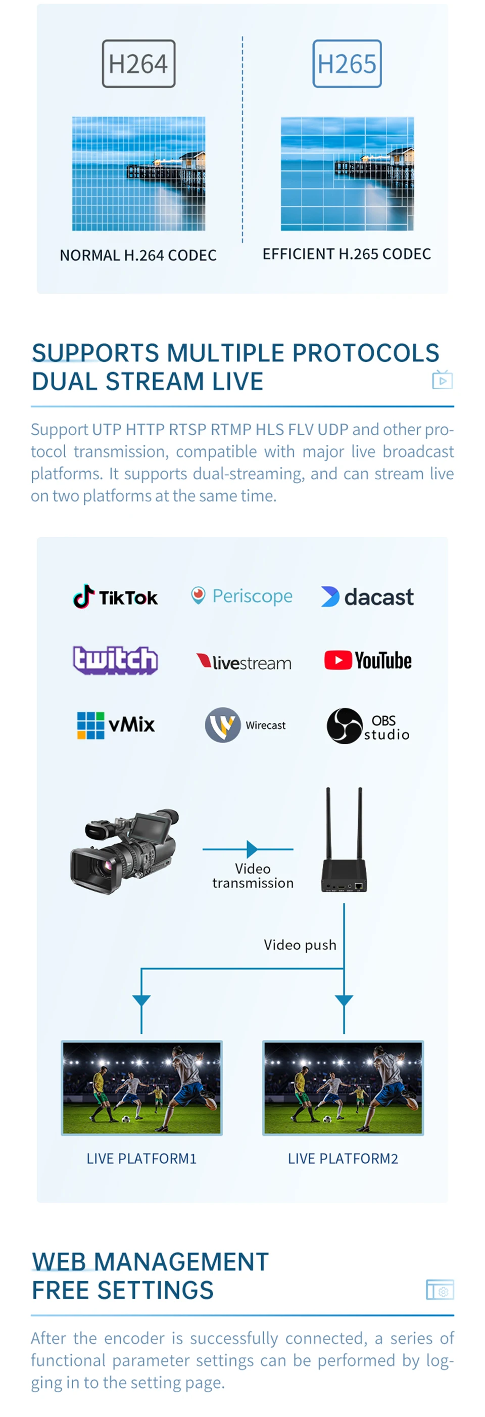 Comprar HEVC-transmisor inalámbrico de transmisión en vivo, decodificador H.265, H.264, Wifi, HDMI, IPTV, H264