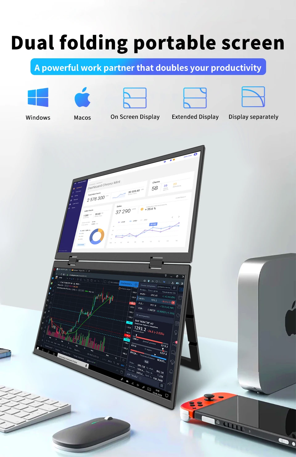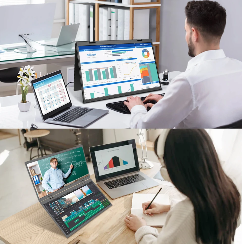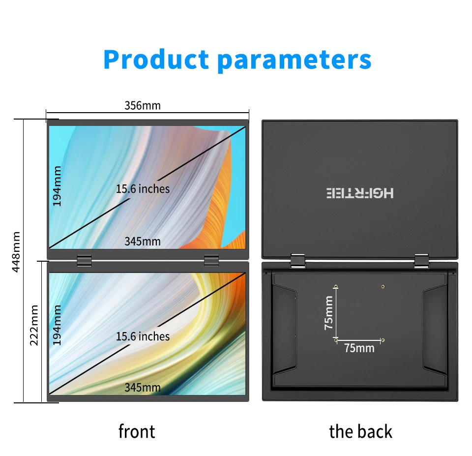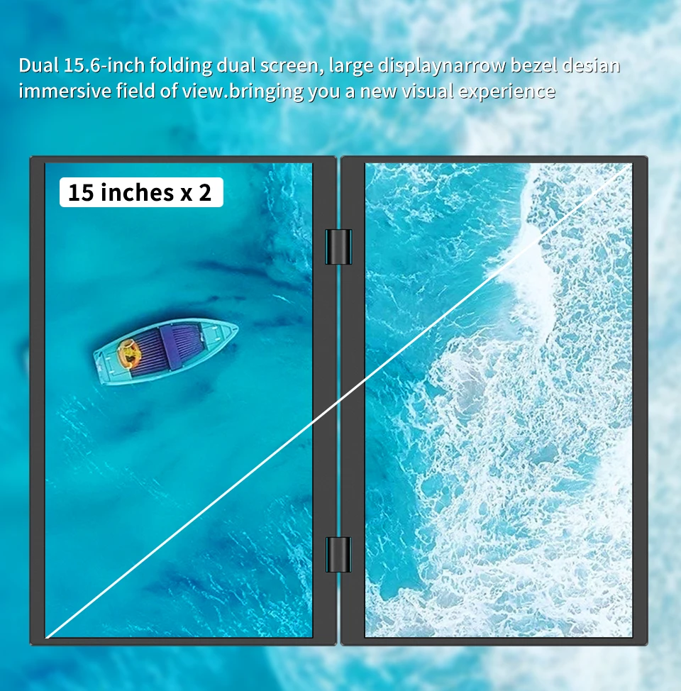 HGFRTEE Monitor portátil dual de 15,6 pulgadas para extensor de pantalla de computadora portátil apilable plegable 315 ° Pantalla triple apilada plegable