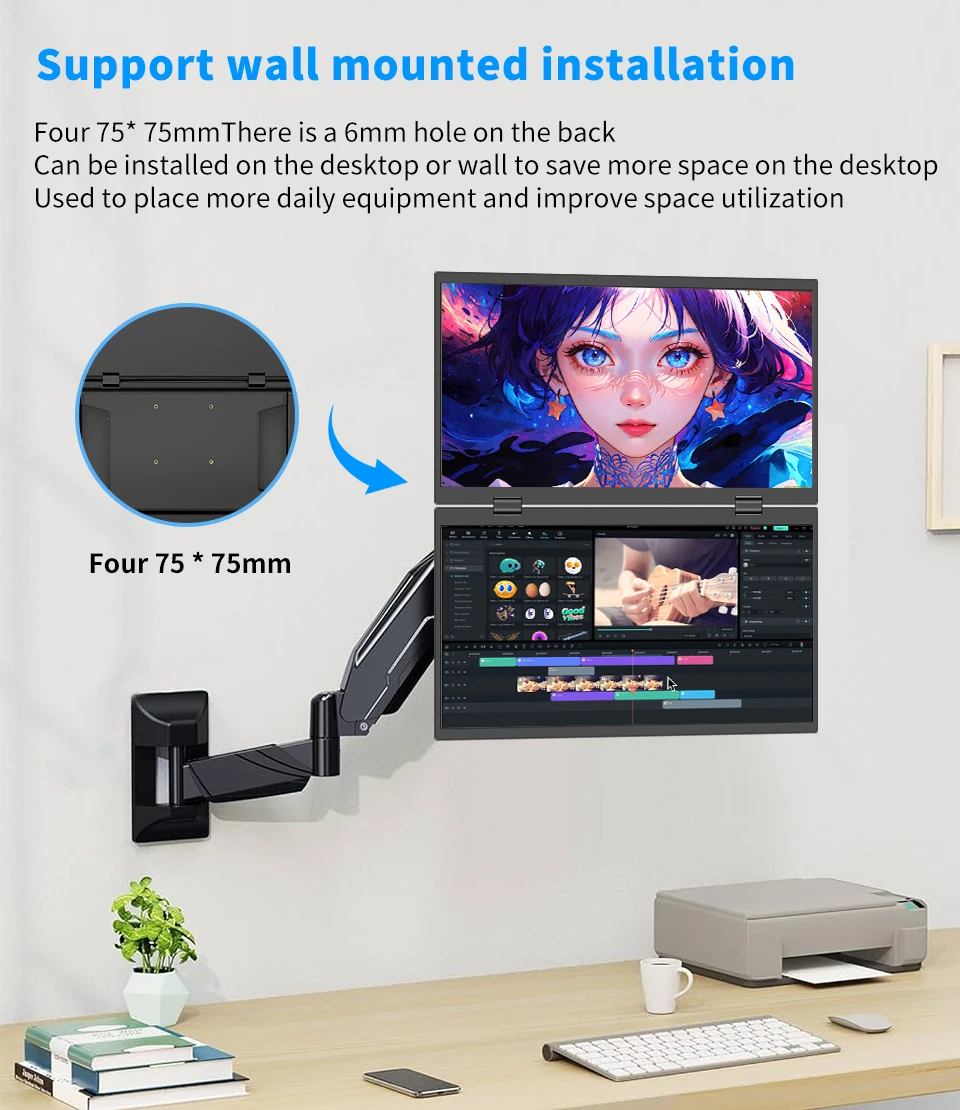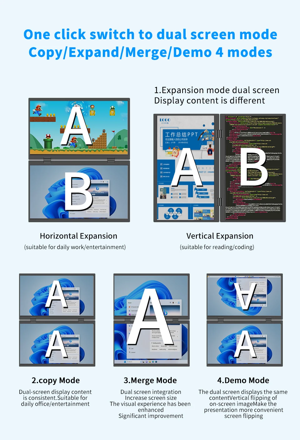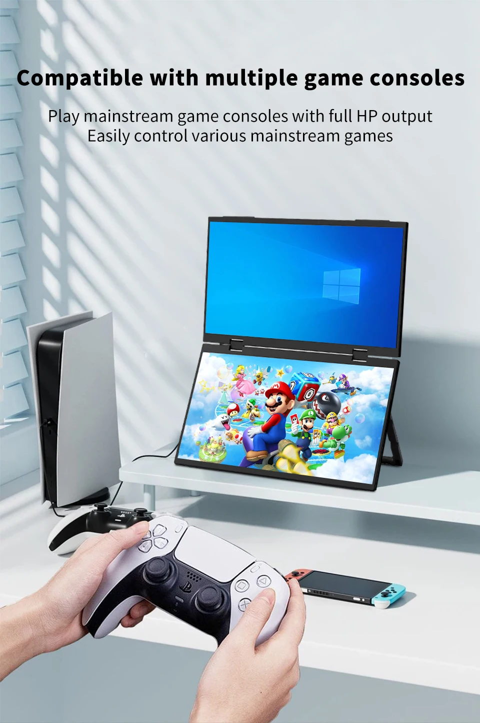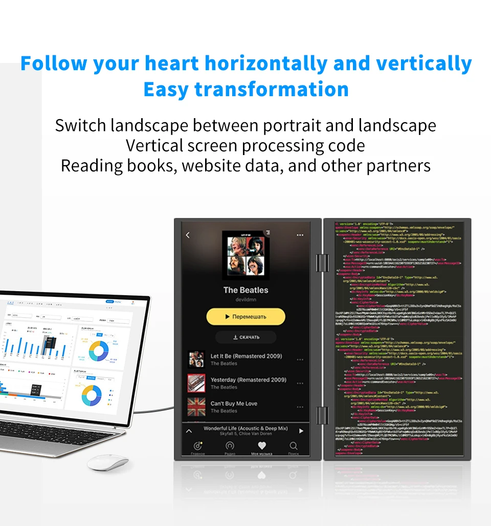 HGFRTEE Monitor portátil dual de 15,6 pulgadas para extensor de pantalla de computadora portátil apilable plegable 315 ° Pantalla triple apilada plegable