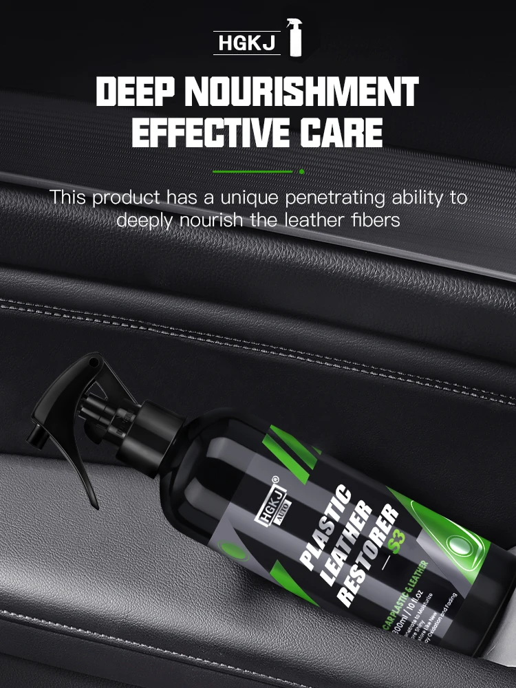 • Restores plastic and leather interior trim :El restaurador de cuero de plástico HGKJ S3 está diseñado para restaurar y renovar el acabado interior de su automóvil, haciendo que se vea nuevo y brillante.