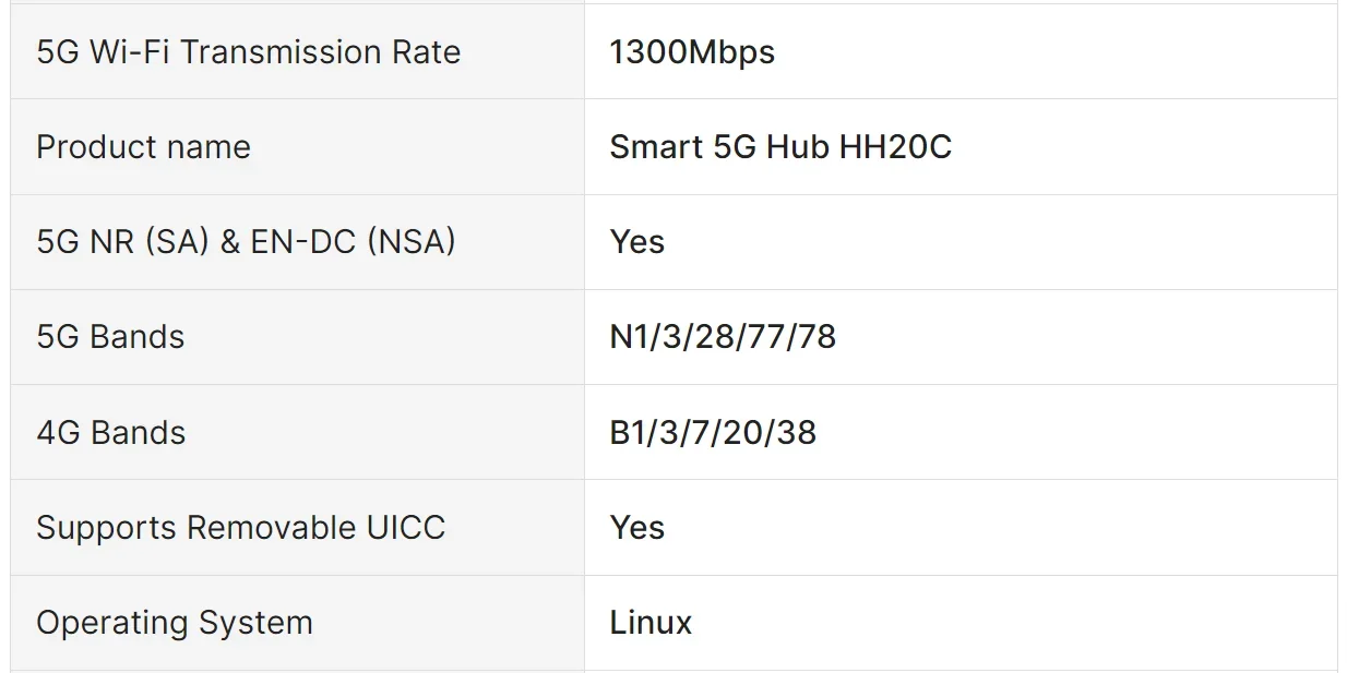 HH20C Enrutador CPE 5G 2.4G Wi-Fi compatible con máx. 300mbps LAN Datos Firewall VPN Uso doméstico 5G Smart Hub Nueva llegada interior