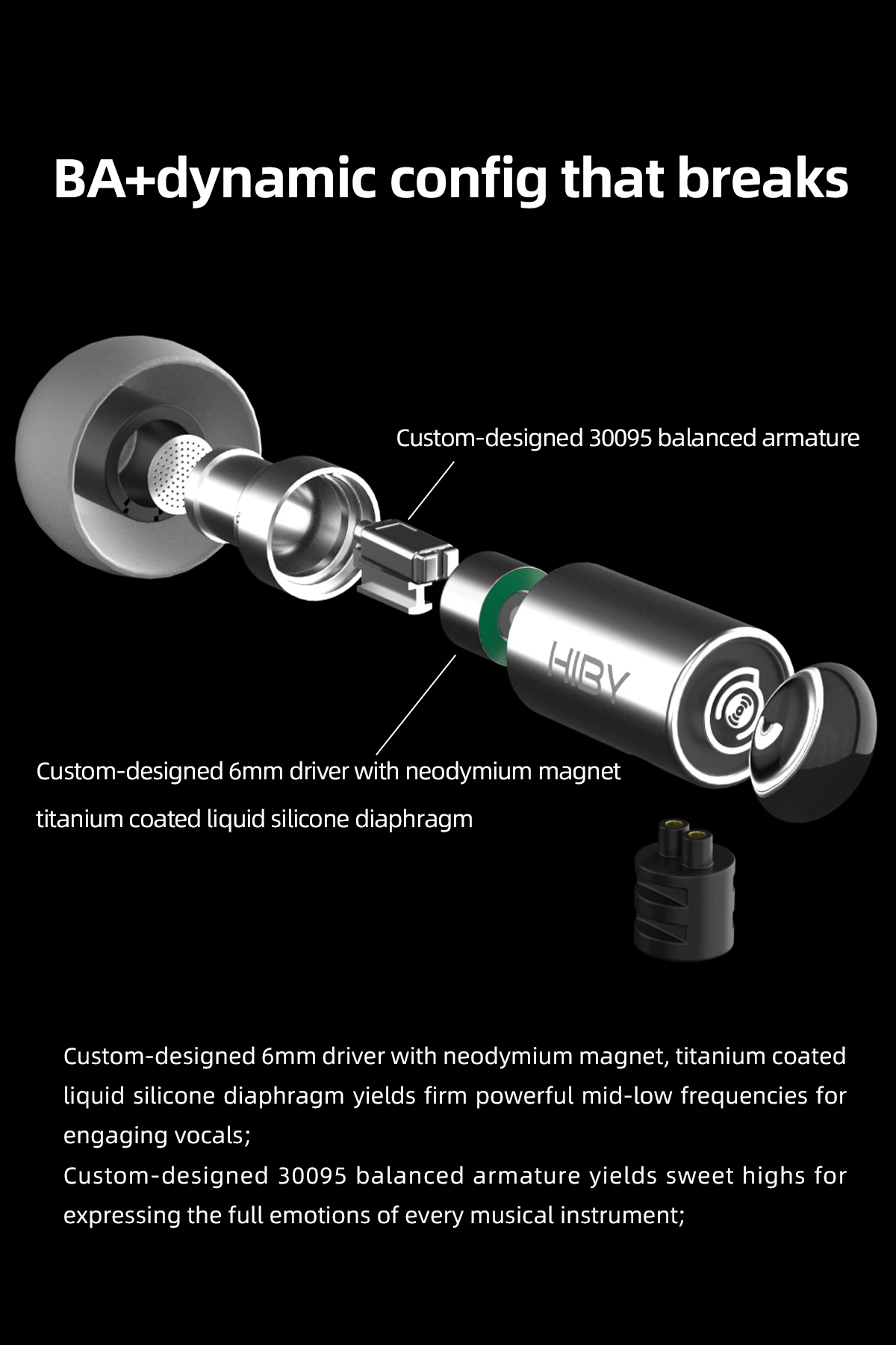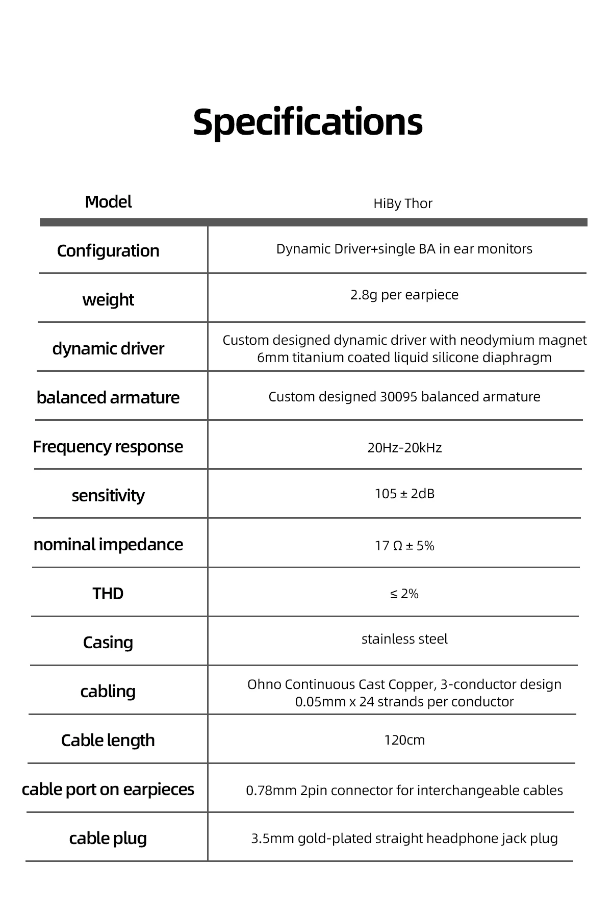 HiBy-auriculares híbridos Thor 1DD + 1BA, cascos HiFi IEM con 2 pines 0,78 desmontables, Monitor, para Android, juegos, PC