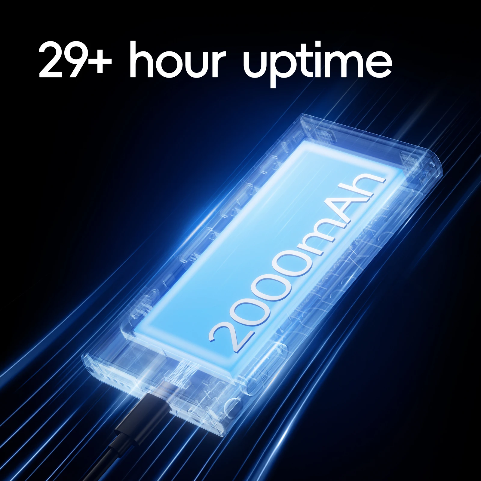 Batería grande de 2000 mAh para más de 29 horas de tiempo y más de 15 días en espera.