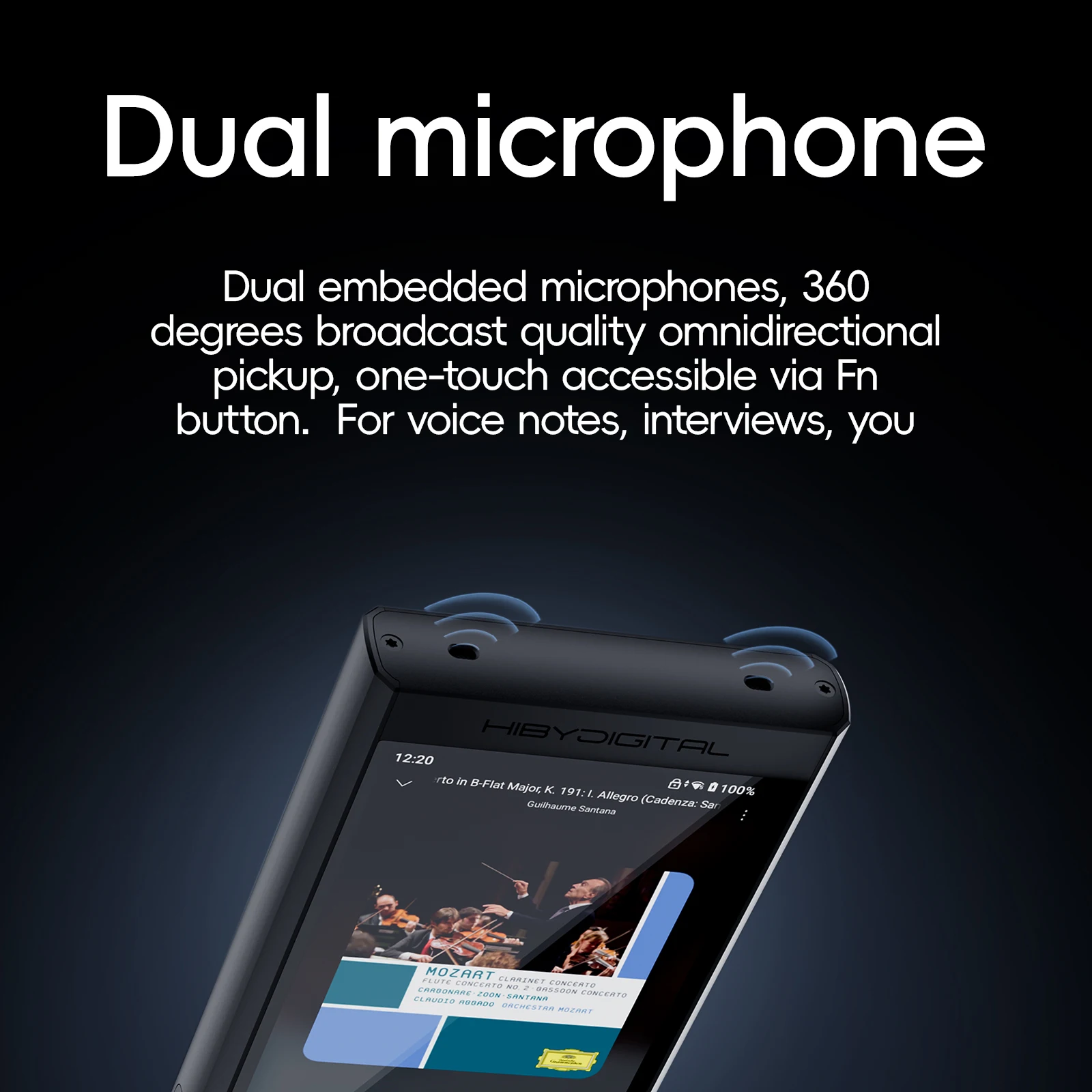 Micrófonos duales integrados, captación omnidireccional de calidad de transmisión de 360 grados, accesible con un solo toque mediante el botón Fn.Para notas de voz, entrevistas, ¡lo nombres!¡Rápido y claro!