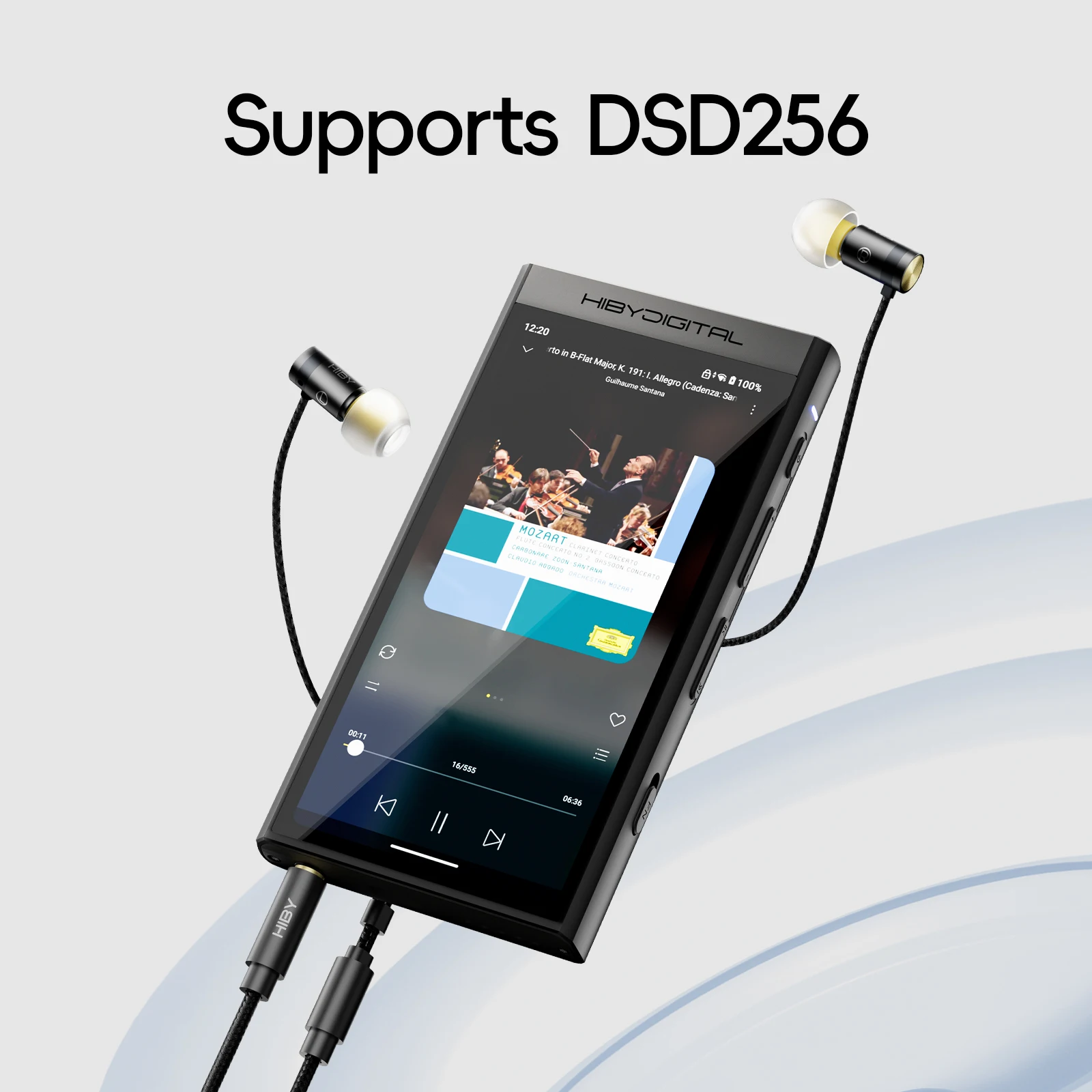 El CS43131, al ser un chip Cirrus Logic MasterHiFi DAC, decodifica nativamente DSD256 y tiene un amplificador de auriculares de alta resolución integrado para una fidelidad de audio líder en su clase con una alta eficiencia energética de la batería.