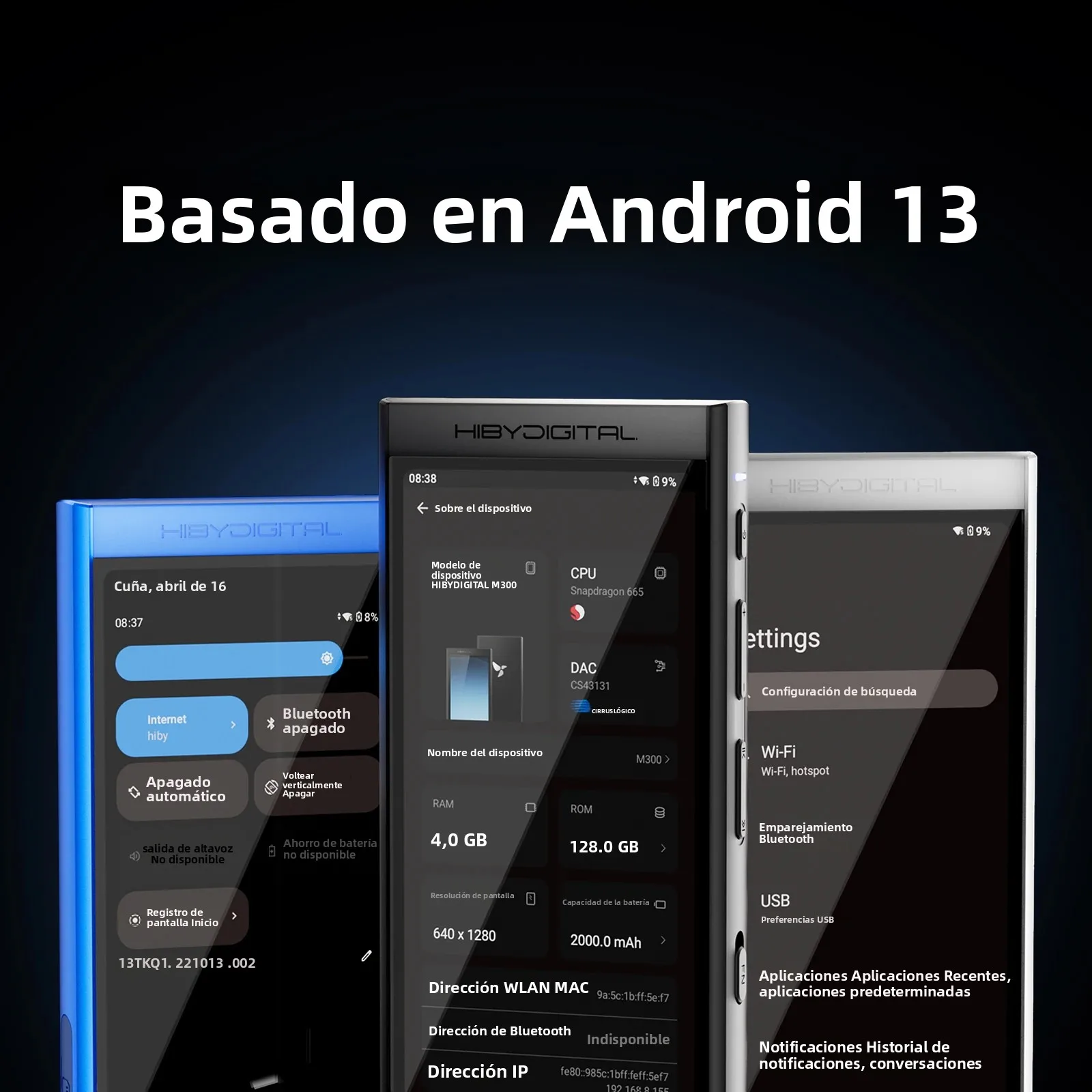 Comprar HiBy Digital M300 Android 13 reproductor de música MP3 Audio HiFi Bluetooth WiFi DSD256 Radio FM micrófono Dual altavoz incorporado IPS 29 horas 128GB
