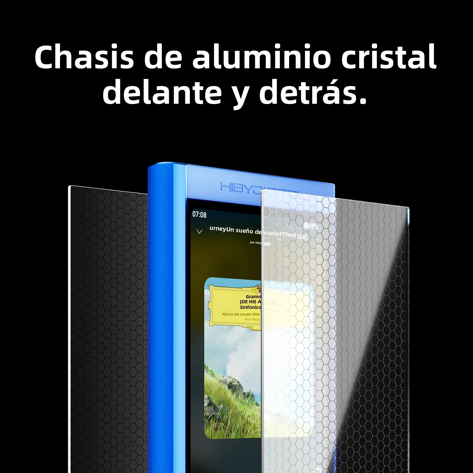 Chasis de aluminio, cristal frontal y trasera.