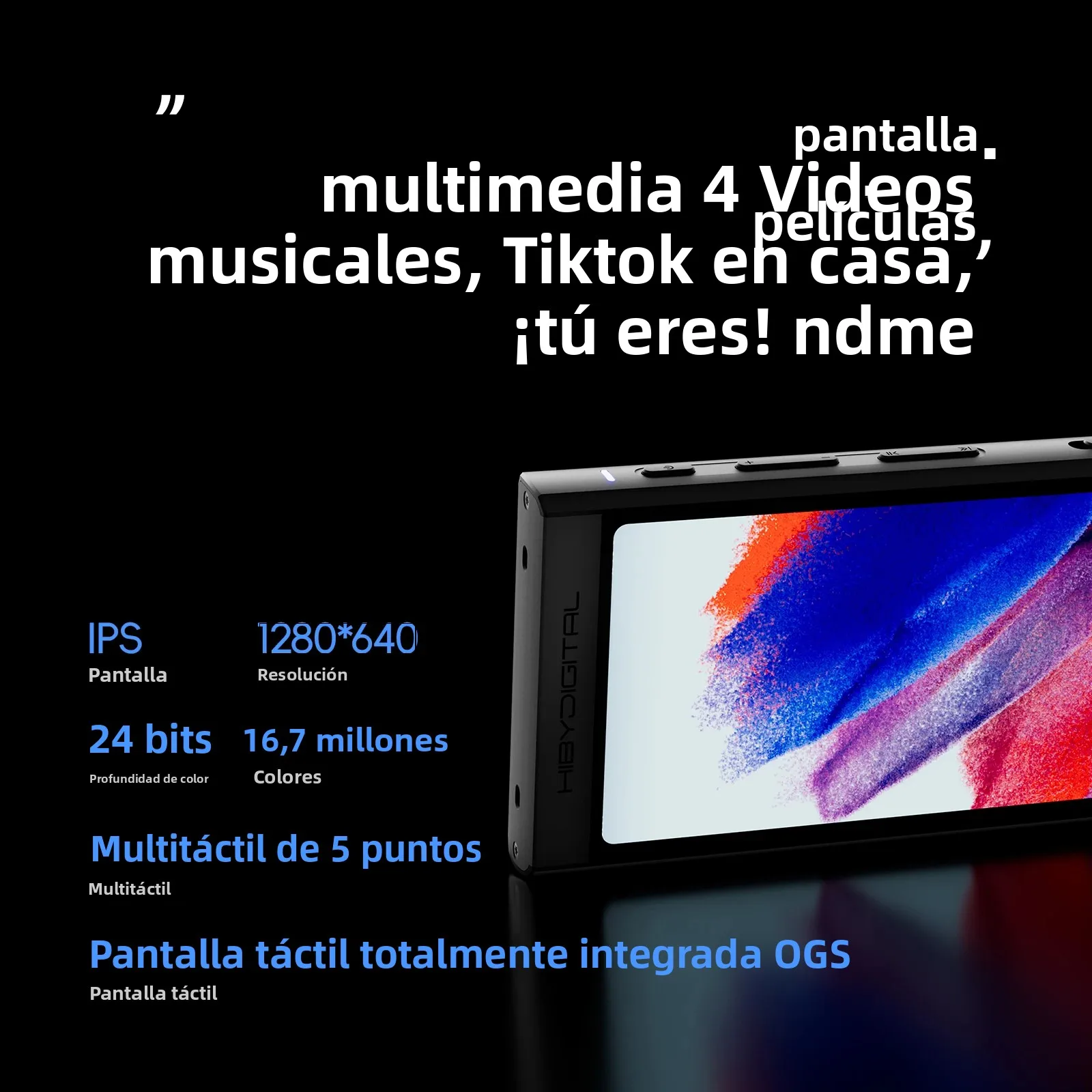 24 bits 16,7 millones de colores, pantalla táctil totalmente integrada OGS.