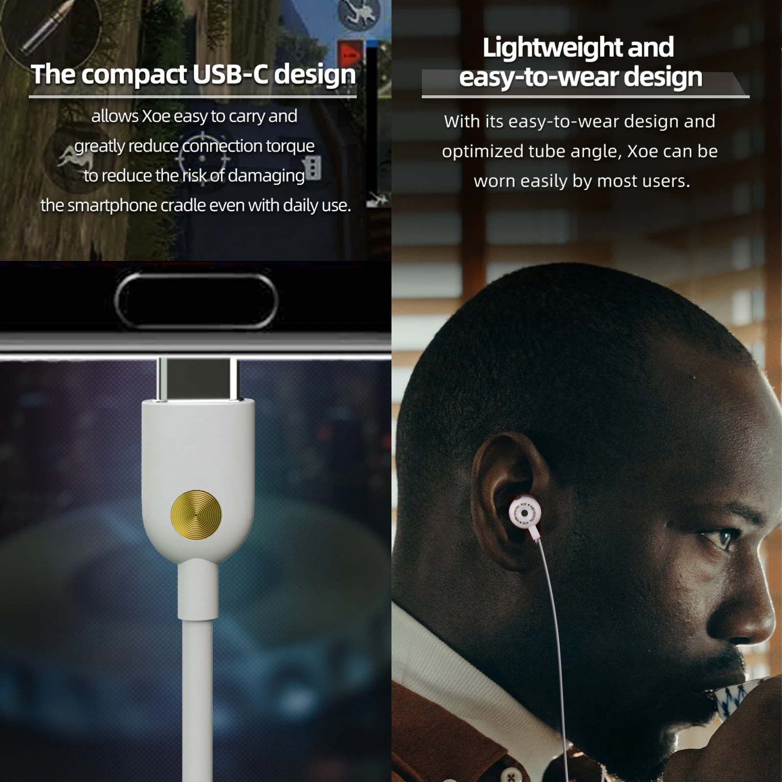 El diseño compacto USB-C: El diseño USB-C permite que HIBYDIGITAL Xoe sea fácil de transportar y reduce en gran medida el par de conexión para reducir el riesgo de dañar la base del teléfono inteligente incluso con el uso diario.