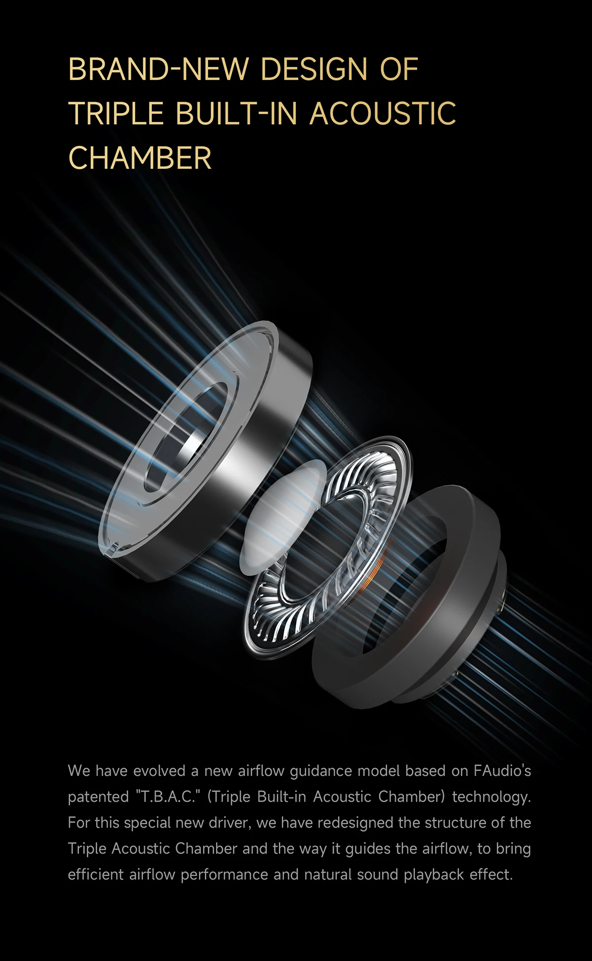 Hemos evolucionado un nuevo modelo de guía de flujo de aire basado en el "T.B.A.C" patentado de FAudio.(Triple Cámara Acústica incorporada).