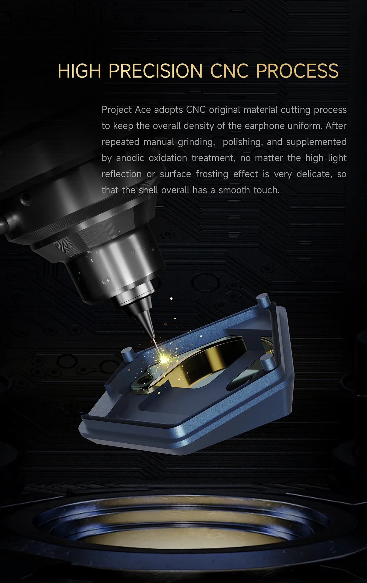 El Proyecto Ace IEM utiliza corte CNC para una densidad uniforme.El pulido, el pulido y el anodizado manuales crean un tacto suave.