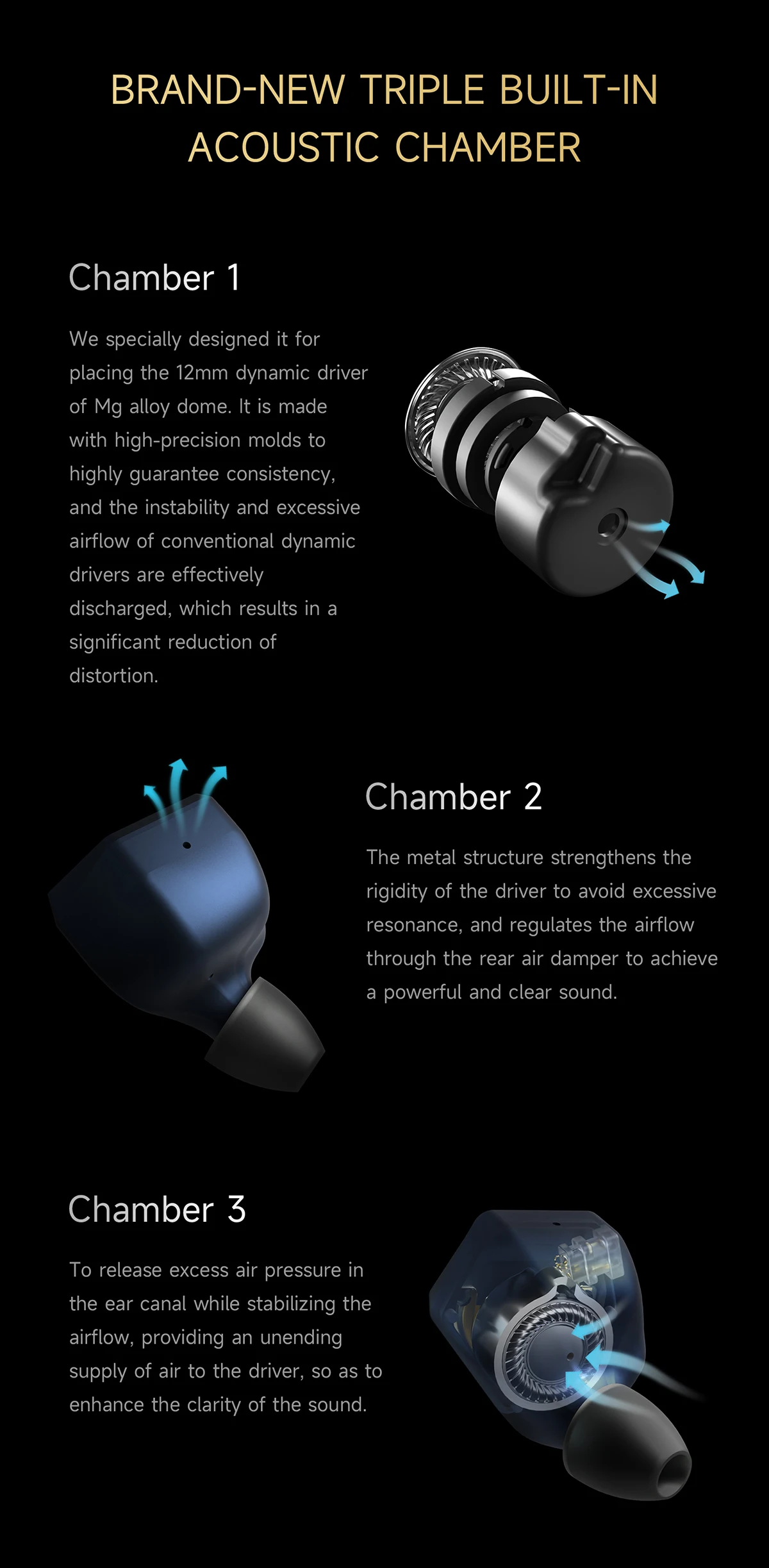 Lo diseñamos especialmente para colocar el controlador dinámico de 12 mm de una cúpula de aleación de Mg, utilizando moldes de alta precisión para brindar consistencia y distorsión reducida.