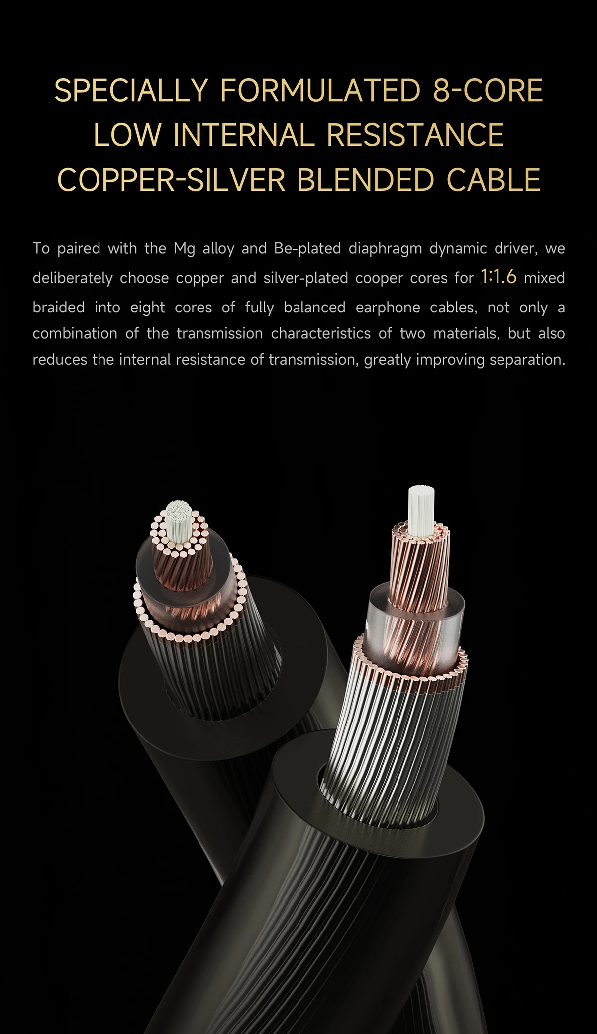 Los auriculares cuentan con diafragmas chapados en berilio para una velocidad ligera y una respuesta precisa de frecuencia ultraalta, mejorando los detalles y la textura tonal.