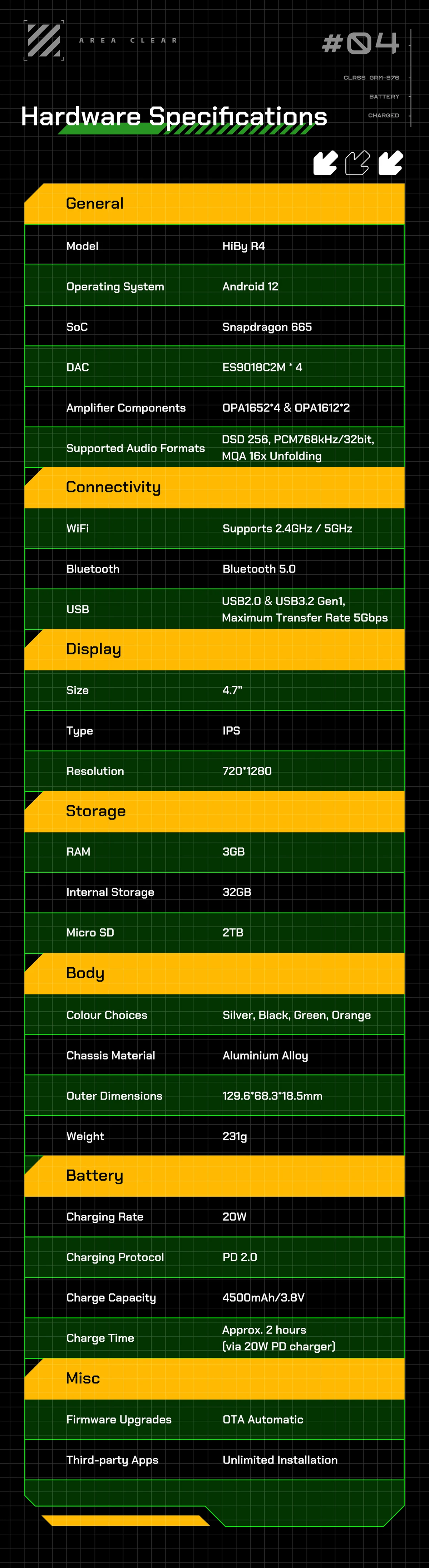 HiBy R4 es un reproductor de audio digital HiFi básico con énfasis en la máxima relación rendimiento-precio, al tiempo que presenta un diseño industrial único y un equilibrio favorable entre un funcionamiento suave, un sonido excelente y una experiencia de usuario rica e intuitiva.Adecuado para estilos de música modernos y populares, brinda una experiencia sónica bien basada que disfruta para escuchar a largo plazo.