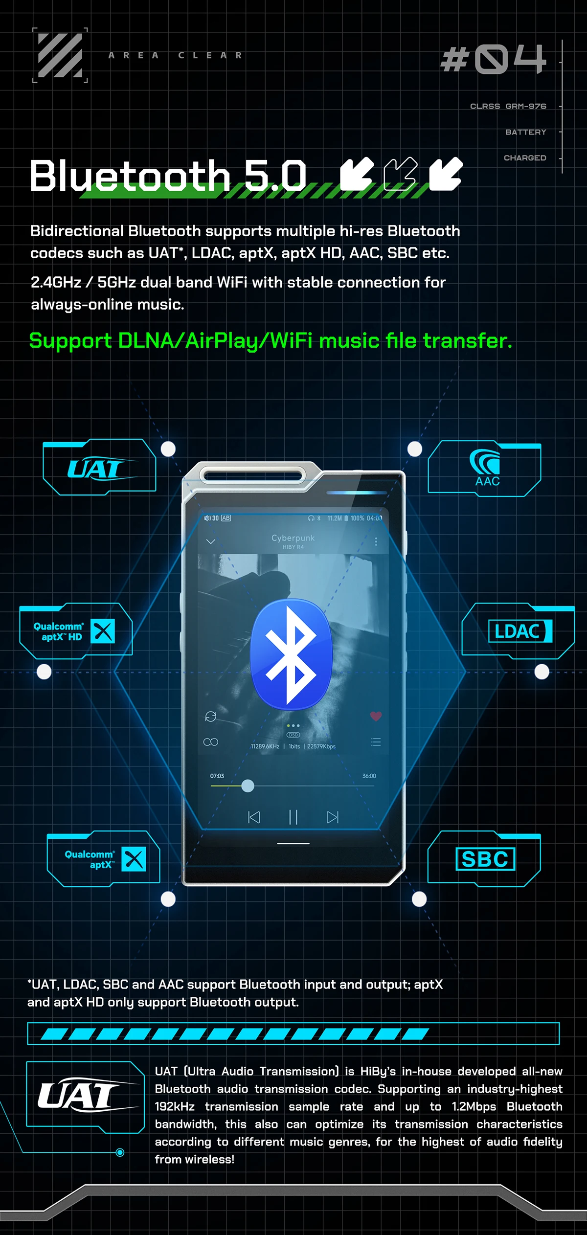 Bluetooth bidireccional admite múltiples códec Bluetooth de alta resolución como UAT*, LDAC, aptX, aptX HD, AAC, SBC, etc.