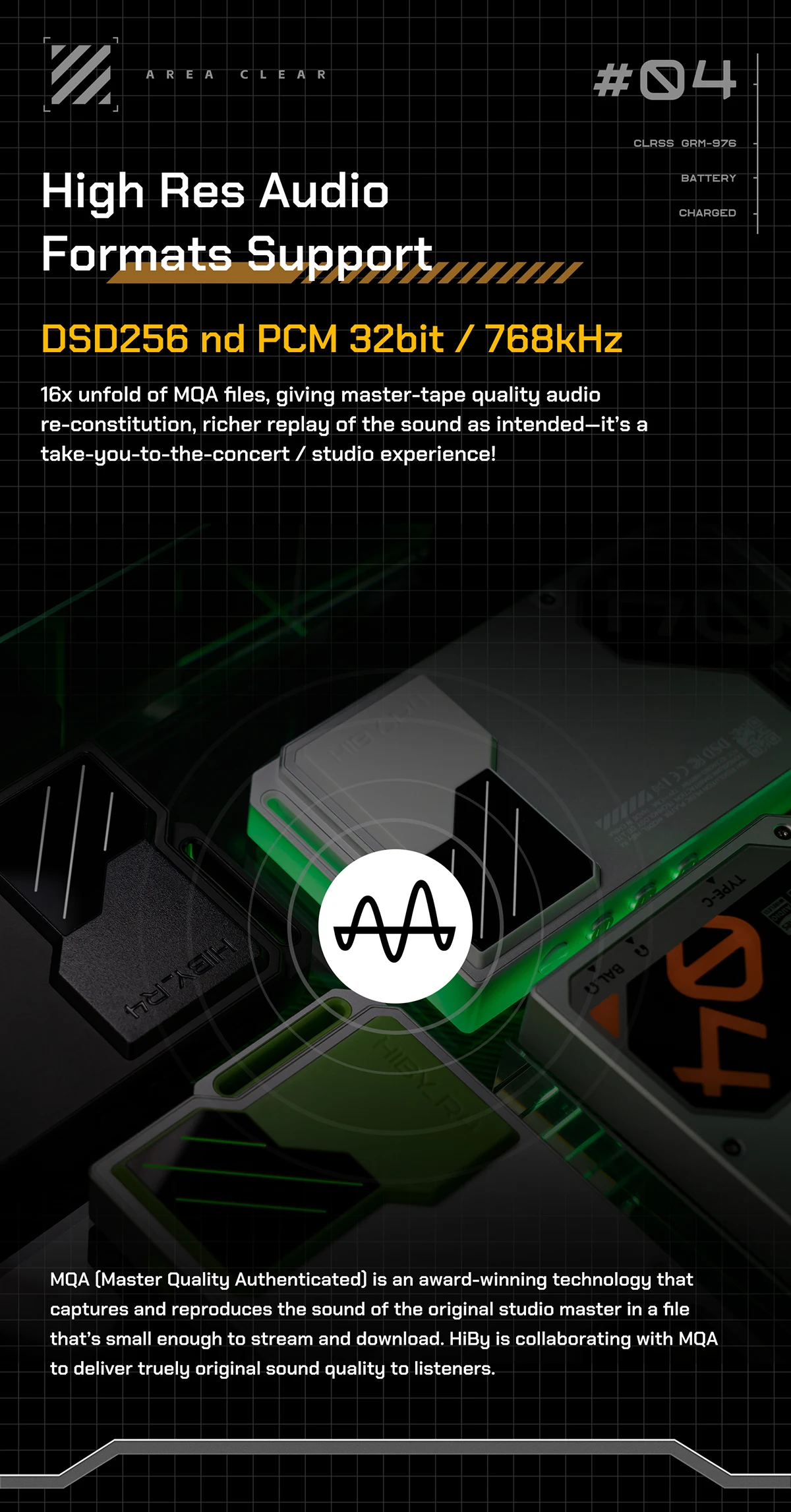 MQA (Master Quality Authenticated) es una tecnología galardonada que captura y reproduce el sonido del maestro de estudio original en un archivo que es lo suficientemente pequeño como para transmitir y descargar.HiBy está colaborando con MQA para ofrecer una calidad de sonido verdaderamente original a los oyentes.
