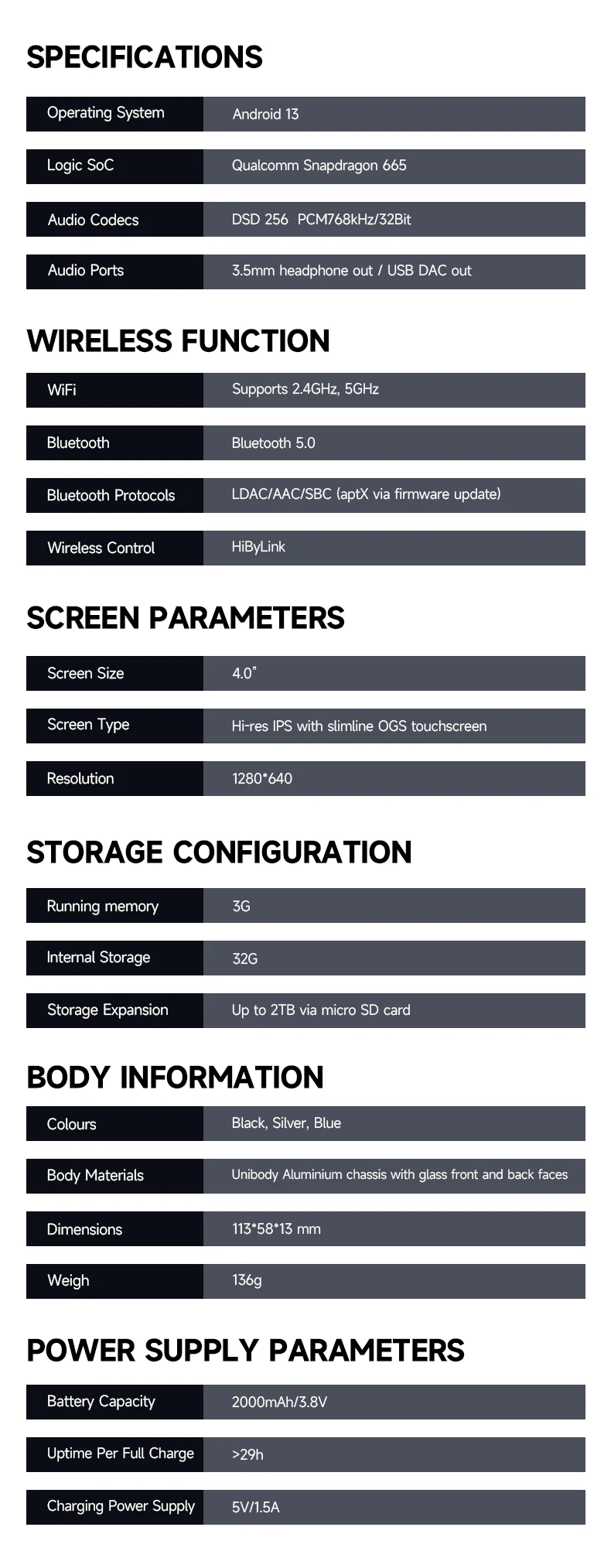 Comprar HiBy-REPRODUCTOR DE MÚSICA Digital M300 con Android 13, MP3, Audio HiFi, Bluetooth, WiFi, USB, DAC, DSD, Radio FM, micrófono Dual, altavoz incorporado, IPS, 29hr